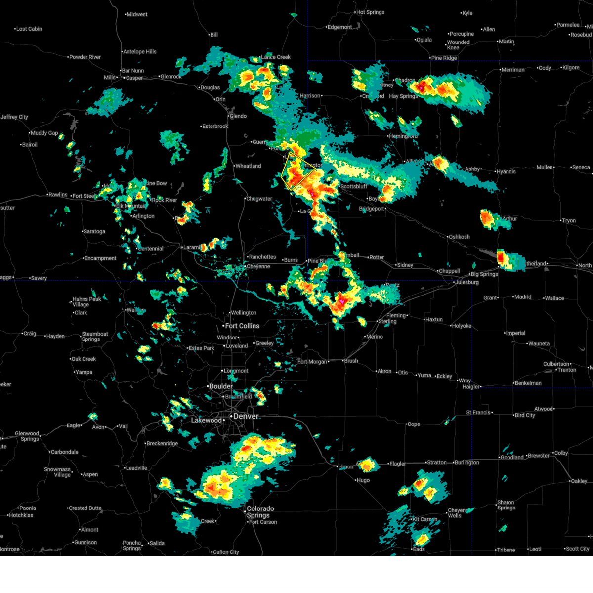 At 314 pm mdt, a severe thunderstorm was located near hawk springs recreation area, or 25 miles south of torrington, moving north at 35 mph (radar indicated). Hazards include quarter size hail. Damage to vehicles is expected. this severe thunderstorm will be near, hawk springs around 325 pm mdt. yoder around 340 pm mdt. lyman and huntley around 345 pm mdt. torrington around 405 pm mdt. Other locations impacted by this severe thunderstorm include henry.