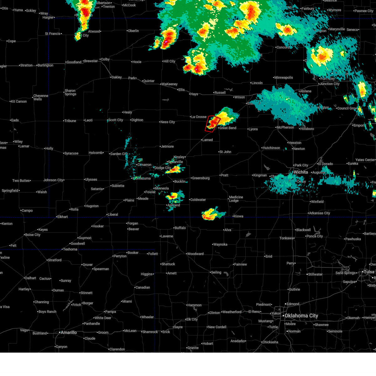 At 830 pm cdt, severe thunderstorms were located along a line extending from near ellinwood to 10 miles southeast of great bend, moving southeast at 40 mph. these are very dangerous storms (radar indicated). Hazards include 80 mph wind gusts and golf ball size hail. Flying debris will be dangerous to those caught without shelter. mobile homes will be heavily damaged. expect considerable damage to roofs, windows and vehicles. extensive tree damage and power outages are likely. Locations impacted include, great bend, hoisington, ellinwood, claflin, odin, cheyenne bottoms and great bend airport.