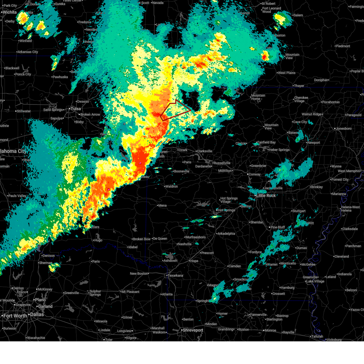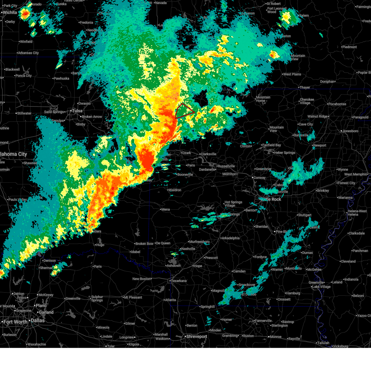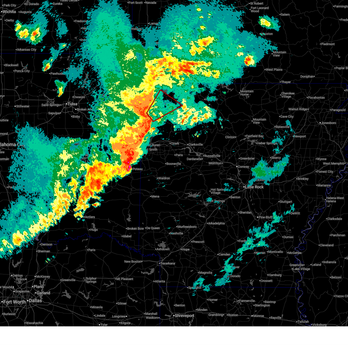 At 1228 am cst, severe thunderstorms were located along a line extending from 2 miles south of omaha to 3 miles southeast of enterprise, moving east at 70 mph (radar indicated). Hazards include 60 mph wind gusts. Expect damage to roofs, siding, and trees. locations in or near the path include, fort smith, van buren, sallisaw, poteau, ozark, stigler, charleston, huntsville, cedarville, mountainburg, natural dam, greenwood, alma, barling, pocola, muldrow, roland, green forest, lavaca, spiro, this includes the following highways, interstate 40 in arkansas between mile markers 0 and 40. interstate 40 in oklahoma between mile markers 299 and 328. interstate 540 between mile markers 1 and 14. interstate 49 between mile markers 22 and 49. A tornado watch remains in effect until 300 am cst for northwestern and west central arkansas, and southeastern, northeastern and east central oklahoma.