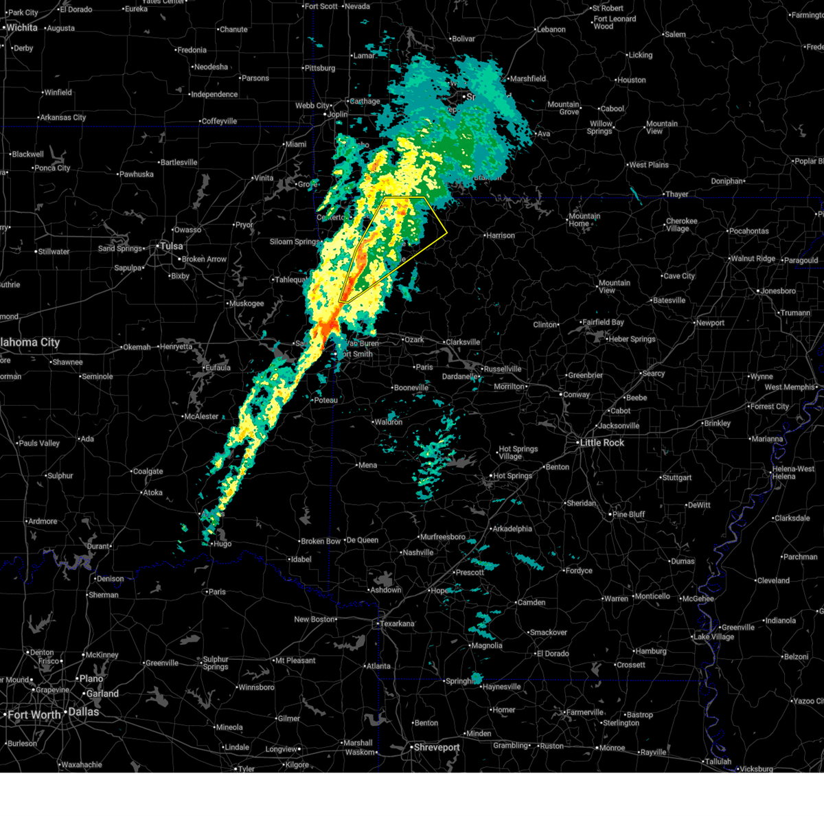 At 740 pm cdt, a confirmed large and extremely dangerous tornado was located 3 miles west of elkins, moving northeast at 50 mph. this is a particularly dangerous situation. take cover now! (radar confirmed tornado). Hazards include damaging tornado. You are in a life-threatening situation. flying debris may be deadly to those caught without shelter. mobile homes will be destroyed. considerable damage to homes, businesses, and vehicles is likely and complete destruction is possible. Locations in or near the path include, withrow springs state park, hindsville, wesley, huntsville, tuttle, elkins, mayfield, marble, forum, alabam, best, clifty, goshen, sonora, fayetteville,.
