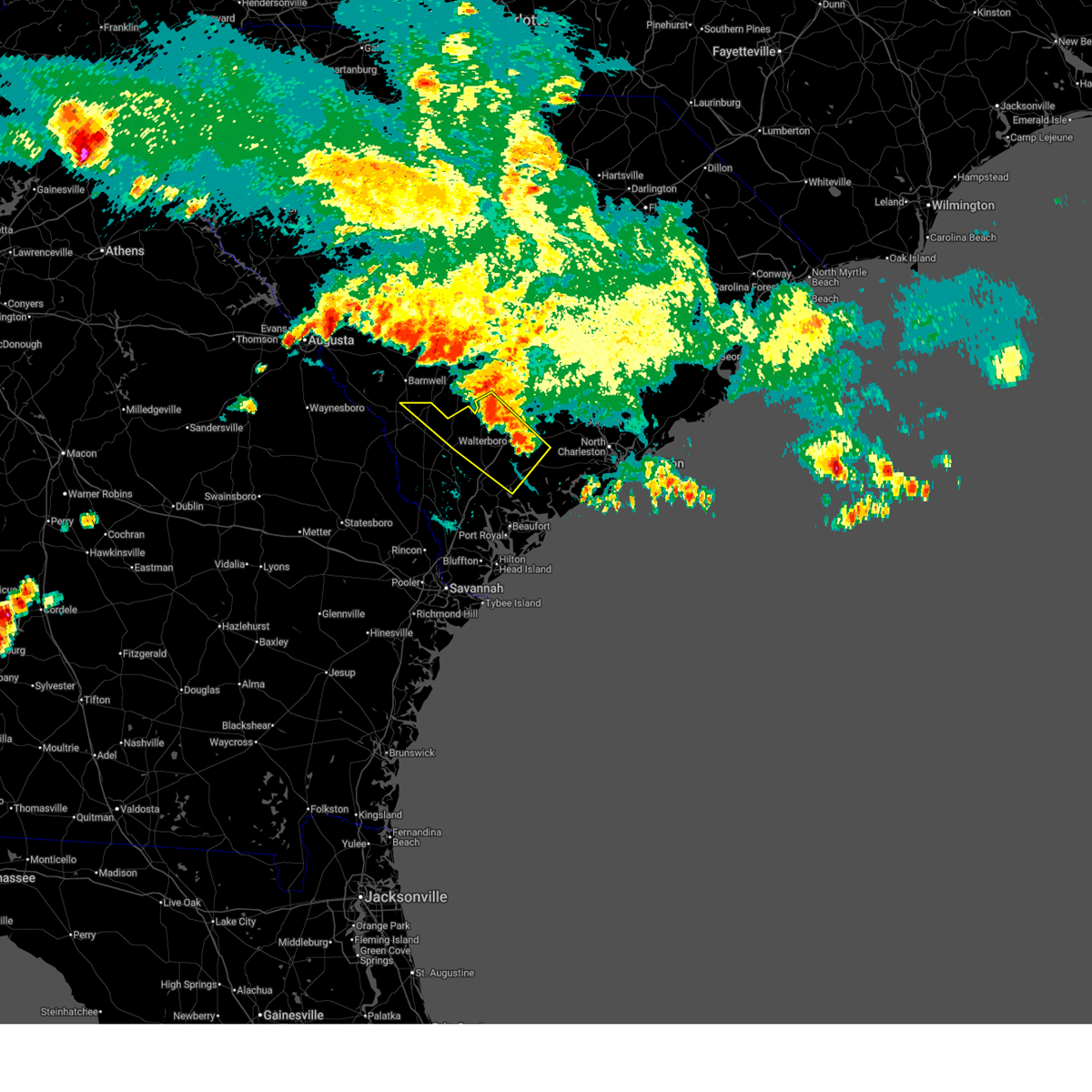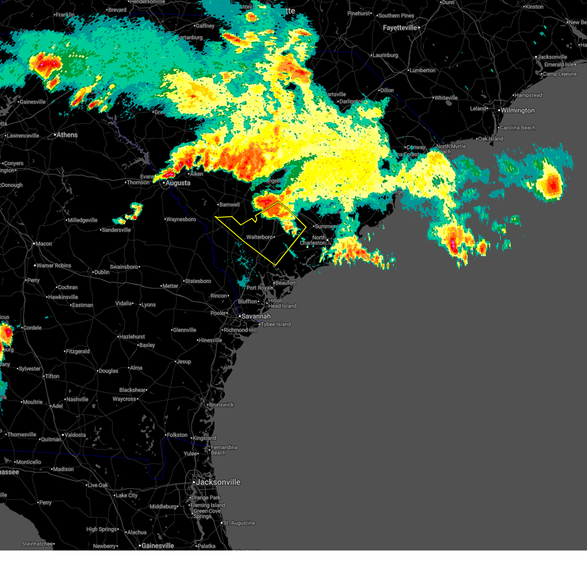 At 1006 pm edt, severe thunderstorms were located along a line from over ritter to over lodge, moving southwest at 25 mph (radar indicated). Hazards include 70 mph wind gusts and quarter size hail. Hail damage to vehicles is expected. expect considerable tree damage. wind damage is also likely to mobile homes, roofs, and outbuildings. locations impacted include, cottageville, walterboro, smoaks, williams, ruffin, colleton, lodge, islandton, sycamore and ulmer. This includes i-95 in south carolina between mile markers 42 and 68.