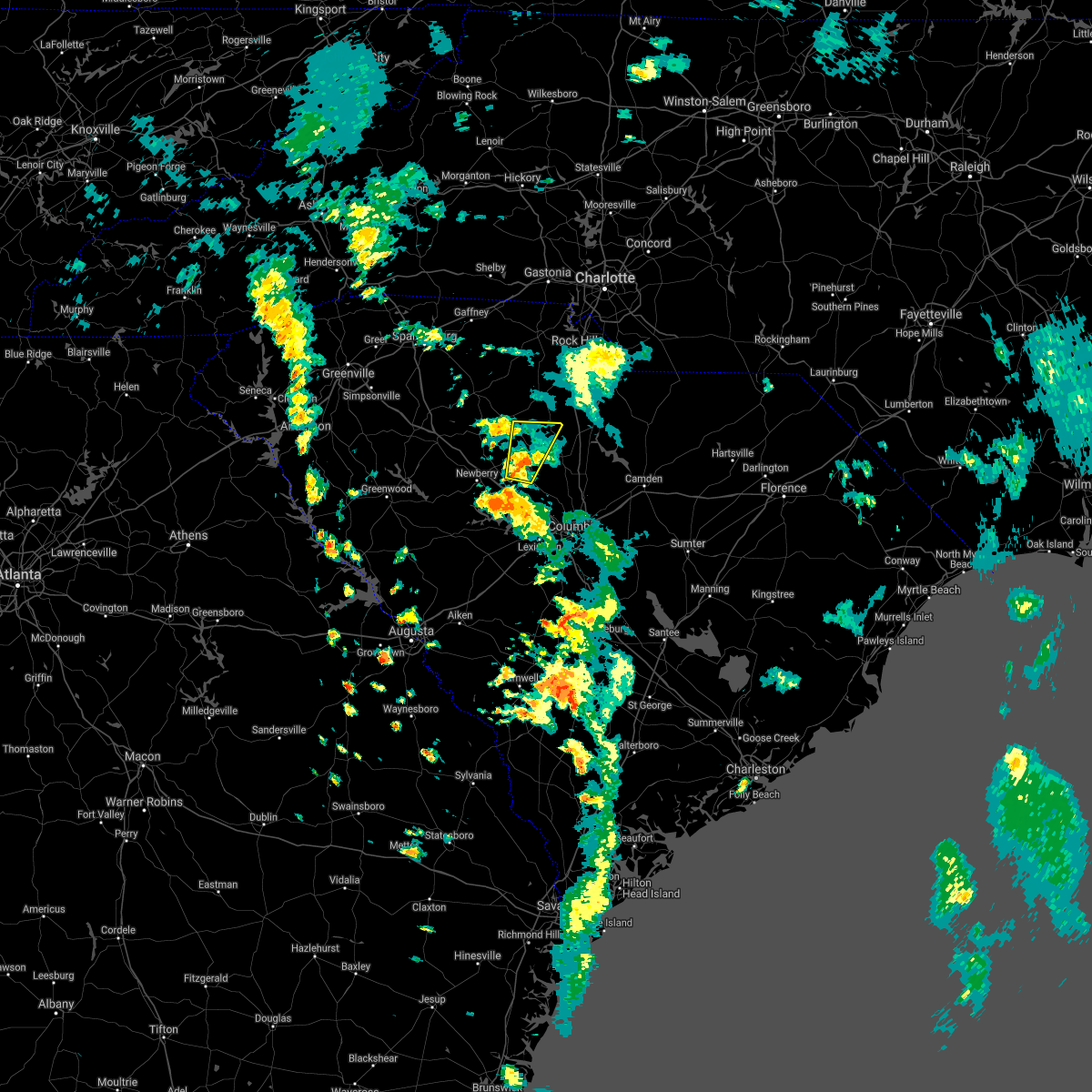 At 336 am edt, severe thunderstorms were located along a line extending from near springdale to 8 miles east of batesburg-leesville, moving southeast at 45 mph (radar indicated). Hazards include 70 mph wind gusts and penny size hail. Expect considerable tree damage. damage is likely to mobile homes, roofs, and outbuildings. locations impacted include, columbia, lexington, west columbia, cayce, irmo, forest acres, batesburg-leesville, winnsboro, springdale, dentsville, oak grove, lake wateree dam, st. andrews, vc summer nuclear station, highway 6 at lake murray dam, red bank, south congaree, pine ridge, gaston, and arcadia lakes. this includes the following highways, interstate 126 between mile markers 0 and 3. interstate 20 in south carolina between mile markers 38 and 83. interstate 26 between mile markers 87 and 120. Interstate 77 between mile markers 0 and 48.