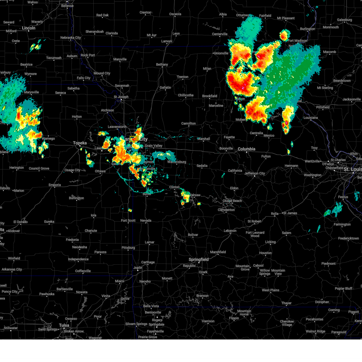 At 132 am cdt, severe thunderstorms were located along a line extending from kearney to avondale to lenexa, and moving southeast at 50 mph. these are very dangerous storms (radar indicated). Hazards include 80 mph wind gusts and quarter size hail. Flying debris will be dangerous to those caught without shelter. mobile homes will be heavily damaged. expect considerable damage to roofs, windows and vehicles. extensive tree damage and power outages are likely. Locations impacted include, kansas city, excelsior springs, overland park, mission hills, prairie village, leawood, sugar creek, courtney, independence, raytown, grandview, buckner, blue springs, lee`s summit, westwood hills, mission woods, crystal lakes, woods heights, missouri city and sibley.