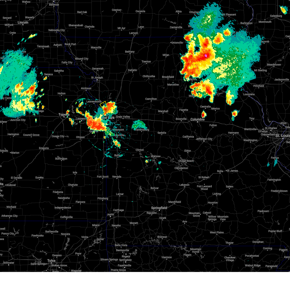 At 716 pm cdt, severe thunderstorms were located along a line extending from nortonville to mclouth to vinland, and moving northeast at 35 mph (radar indicated). Hazards include 60 mph wind gusts and penny size hail. Expect damage to roofs. siding and trees. locations impacted include, tonganoxie, gardner, de soto, olathe, atchison, leavenworth, basehor, weston, lansing, bonner springs, platte city, edwardsville, shawnee, lake quivira, easton, linwood, rushville, tracy, camden point and reno. this will impact the following interstates, i-70 in kansas between mile markers 410 and 416. i-35 in kansas between mile markers 208 and 221. i-435 loop from mile markers 1 to 34 to 83. i-29 between mile markers 14 and 30. 0. 75in.