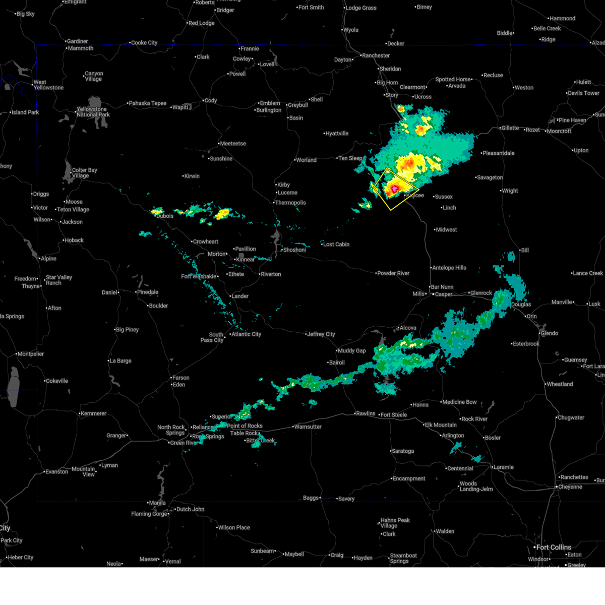 At 646 pm mdt, a severe thunderstorm was located 8 miles east of kaycee, moving east at 35 mph (radar indicated). Hazards include ping pong ball size hail and 60 mph wind gusts. People and animals outdoors will be injured. expect hail damage to roofs, siding, windows, and vehicles. expect wind damage to roofs, siding, and trees. this severe storm will be near, fort reno historical site around 700 pm mdt. other locations impacted by this severe thunderstorm include sussex. This includes interstate 25 between mile markers 248 and 262.