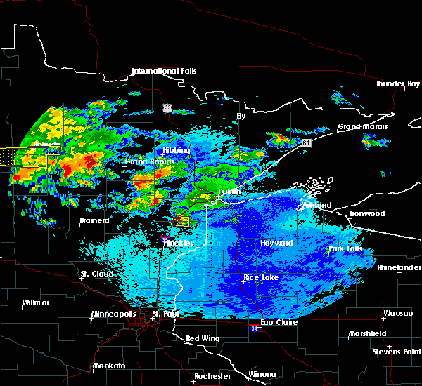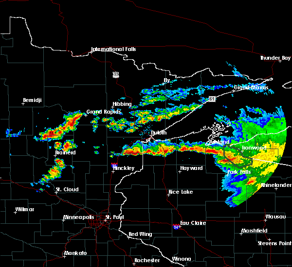 At 823 pm cdt, severe thunderstorms were located along a line extending from 6 miles north of mahtowa to near bruno, moving east at 55 mph (radar indicated). Hazards include 70 mph wind gusts and ping pong ball size hail. People and animals outdoors will be injured. expect hail damage to roofs, siding, windows, and vehicles. expect considerable tree damage. wind damage is also likely to mobile homes, roofs, and outbuildings. severe thunderstorms will be near, carlton, wrenshall and thomson around 835 pm cdt. oliver and dairyland around 845 pm cdt. superior around 850 pm cdt. south range and wisconsin point around 855 pm cdt. hawthorne around 900 pm cdt. maple, poplar in douglas county and gordon around 905 pm cdt. lake nebagamon around 910 pm cdt. Other locations impacted by these severe thunderstorms include pattison state park, lyman lake, scotts corner, wentworth, nickerson, pleasant valley, belden, patzau, chaffey and kingsdale.