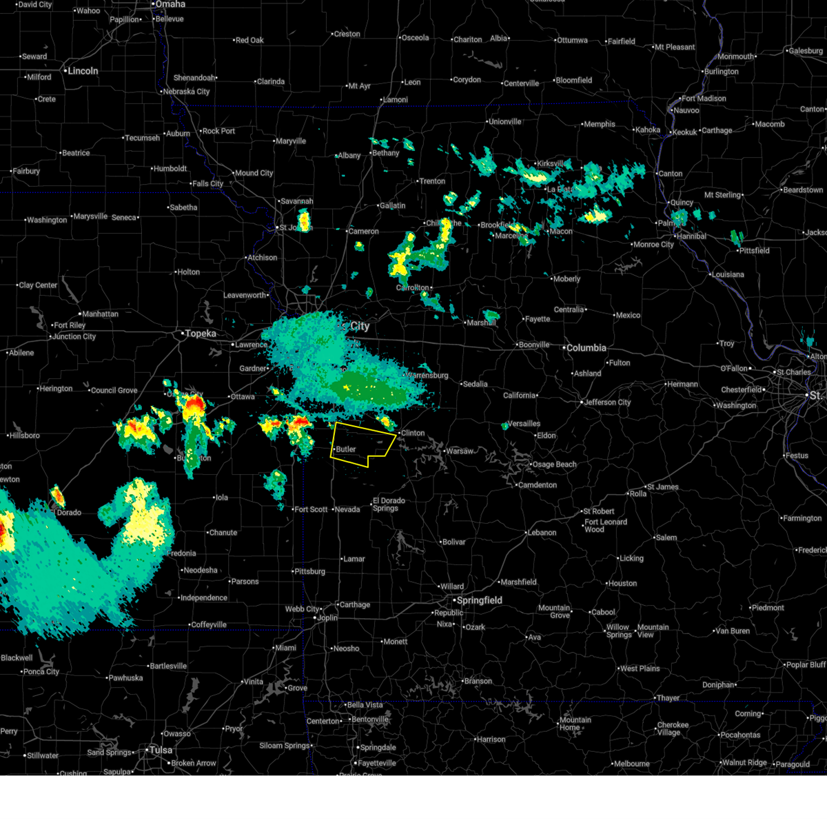 At 653 am cdt, a severe thunderstorm was located over butler, moving northeast at 50 mph (radar indicated). Hazards include 70 mph wind gusts and penny size hail. Expect considerable tree damage. damage is likely to mobile homes, roofs, and outbuildings. Locations impacted include, amoret, blairstown, worland, adrian, hume, rich hill, passaic, la tour, garden city, montrose, rockville, ballard, foster, urich, archie, creighton, amsterdam, hartwell, butler, and la due.