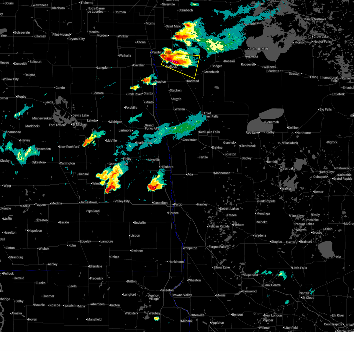 At 927 pm cdt, severe thunderstorms were located along a line extending from near humboldt to near joliette to fairdale, moving east at 40 mph (radar indicated). Hazards include 60 mph wind gusts and penny size hail. Expect damage to roofs. siding and trees. these severe storms will be near, pembina, humboldt, joliette, noyes and st. vincent around 930 pm cdt. northcote and orleans around 940 pm cdt. hallock and union around 945 pm cdt. edinburg and lancaster around 950 pm cdt. park river around 1000 pm cdt. also includes interstate 29 between mile markers 191 and 217. This line of storms produced a 64 mph wind gust in cavalier.