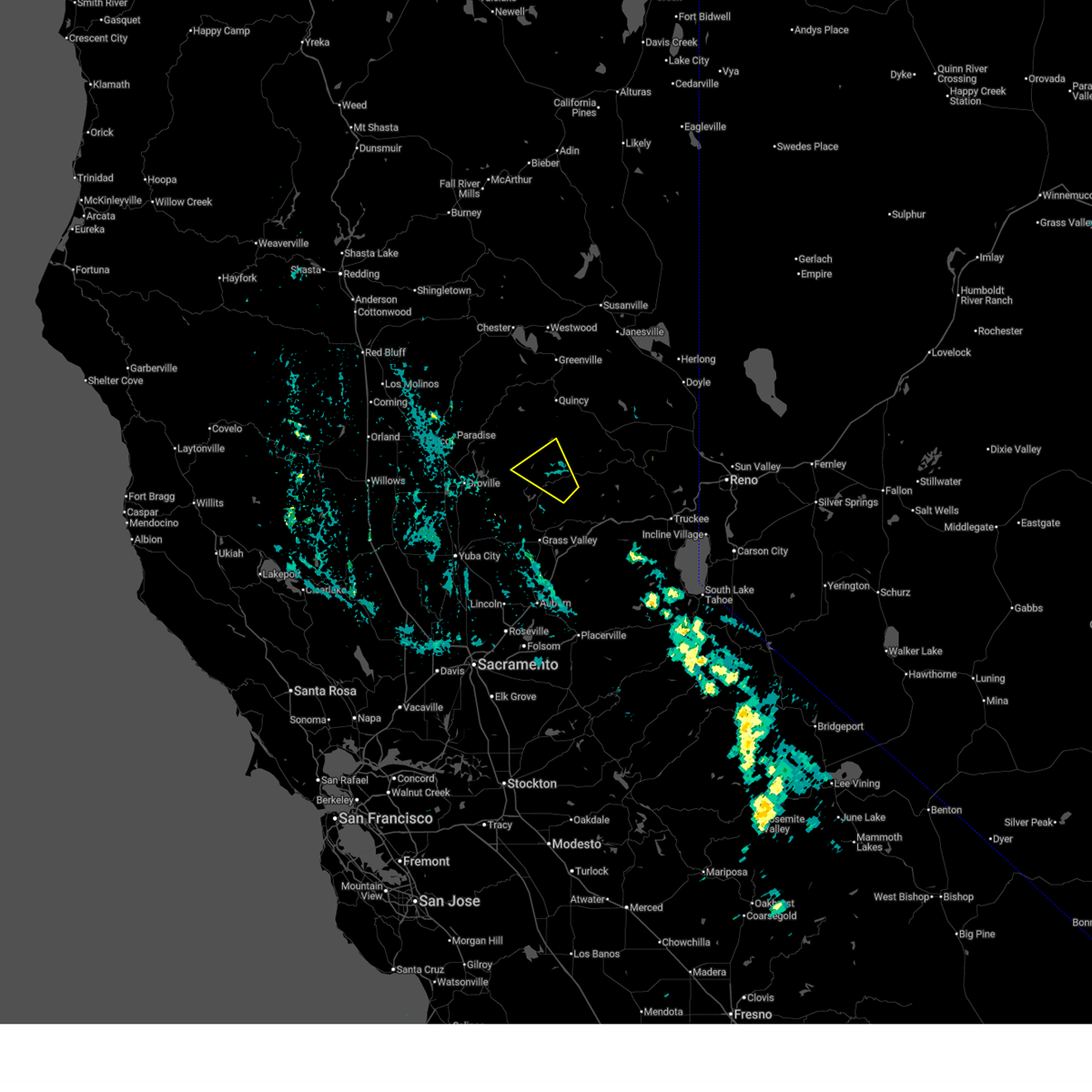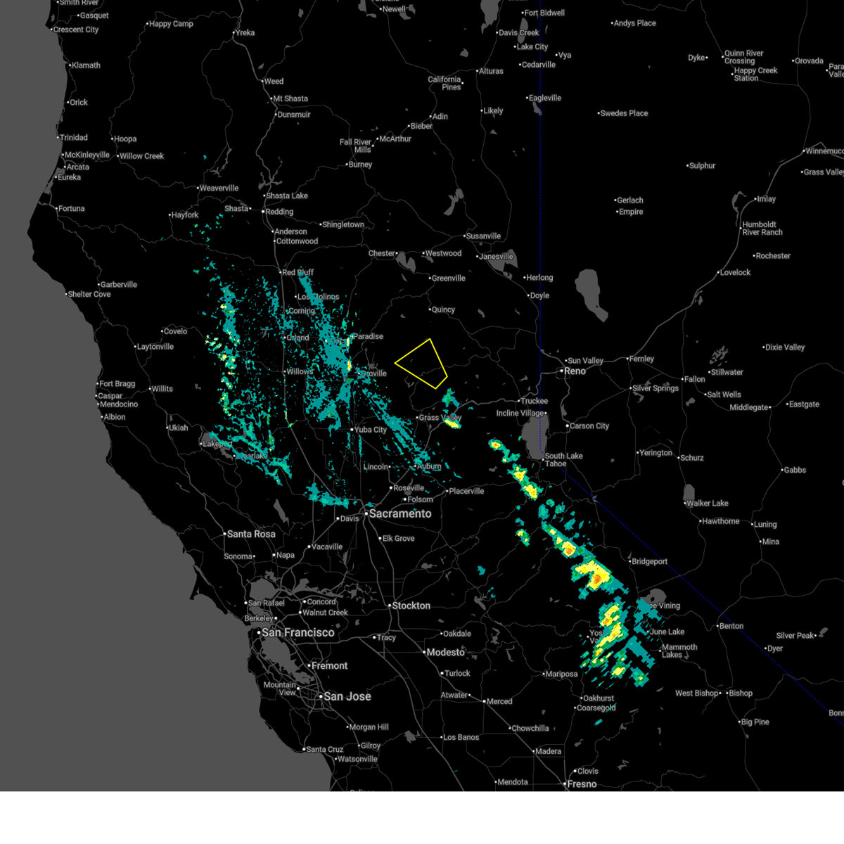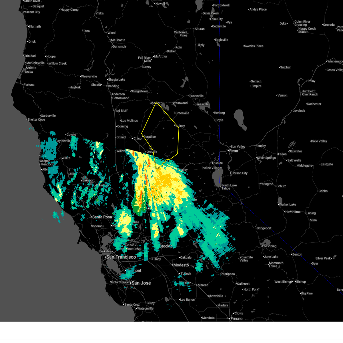 At 529 am pst, severe thunderstorms were located along a line extending from 7 miles northwest of belden to near bucks lake to 6 miles southwest of american house, moving northeast at 60 mph (radar indicated). Hazards include 70 mph wind gusts. Expect considerable tree damage. damage is likely to mobile homes, roofs, and outbuildings. Locations impacted include, paradise, quincy, brush creek rs, pulga, east quincy, stirling city, hurleton, american house, storrie, stanfield hill, little grass valley, dobbins, brownsville, caribou, concow, challenge, twain, la porte, pike, and forbestown.