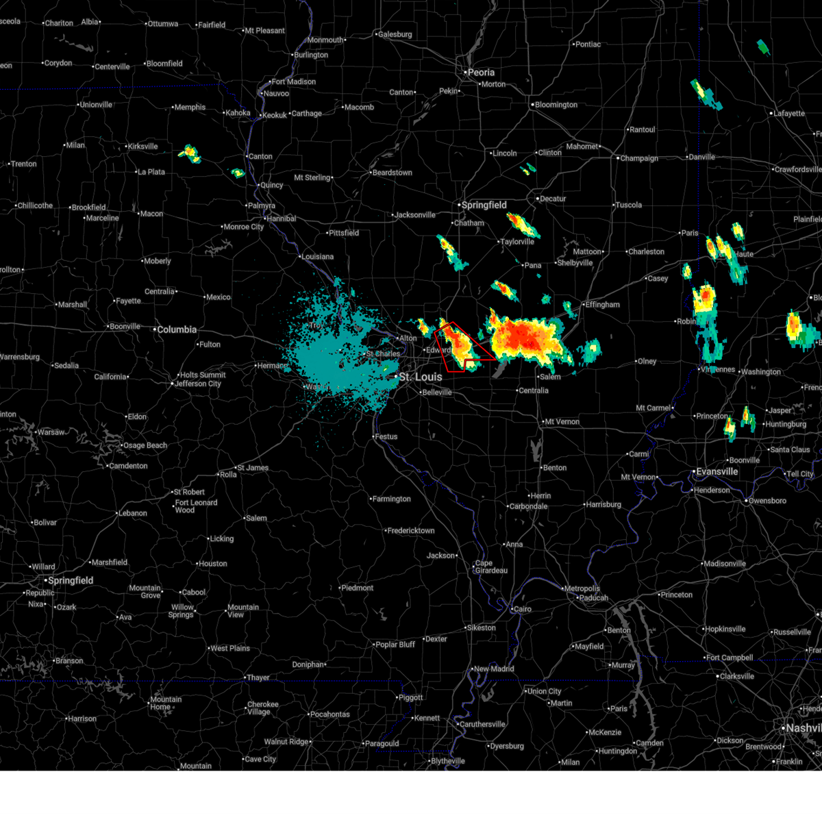 At 1131 pm cdt, a severe thunderstorm was located over st. louis, moving northeast at 50 mph (trained weather spotters reported quarter sized hail in rock hill and kirkwood). Hazards include 60 mph wind gusts and quarter size hail. Hail damage to vehicles is expected. expect wind damage to roofs, siding, and trees. locations impacted include, st. louis, belleville, granite city, o'fallon, east st. louis, collinsville, edwardsville, fairview heights, cahokia, glen carbon, wood river, highland, troy, maryville, pontoon beach, centreville, lebanon, caseyville, washington park, and madison. this also includes horseshoe lake state park. this includes the following highways, interstate 70 in illinois between exits 21 and 30. interstate 55 in illinois between exits 23 and 33. Interstate 64 in illinois between exits 9 and 14.