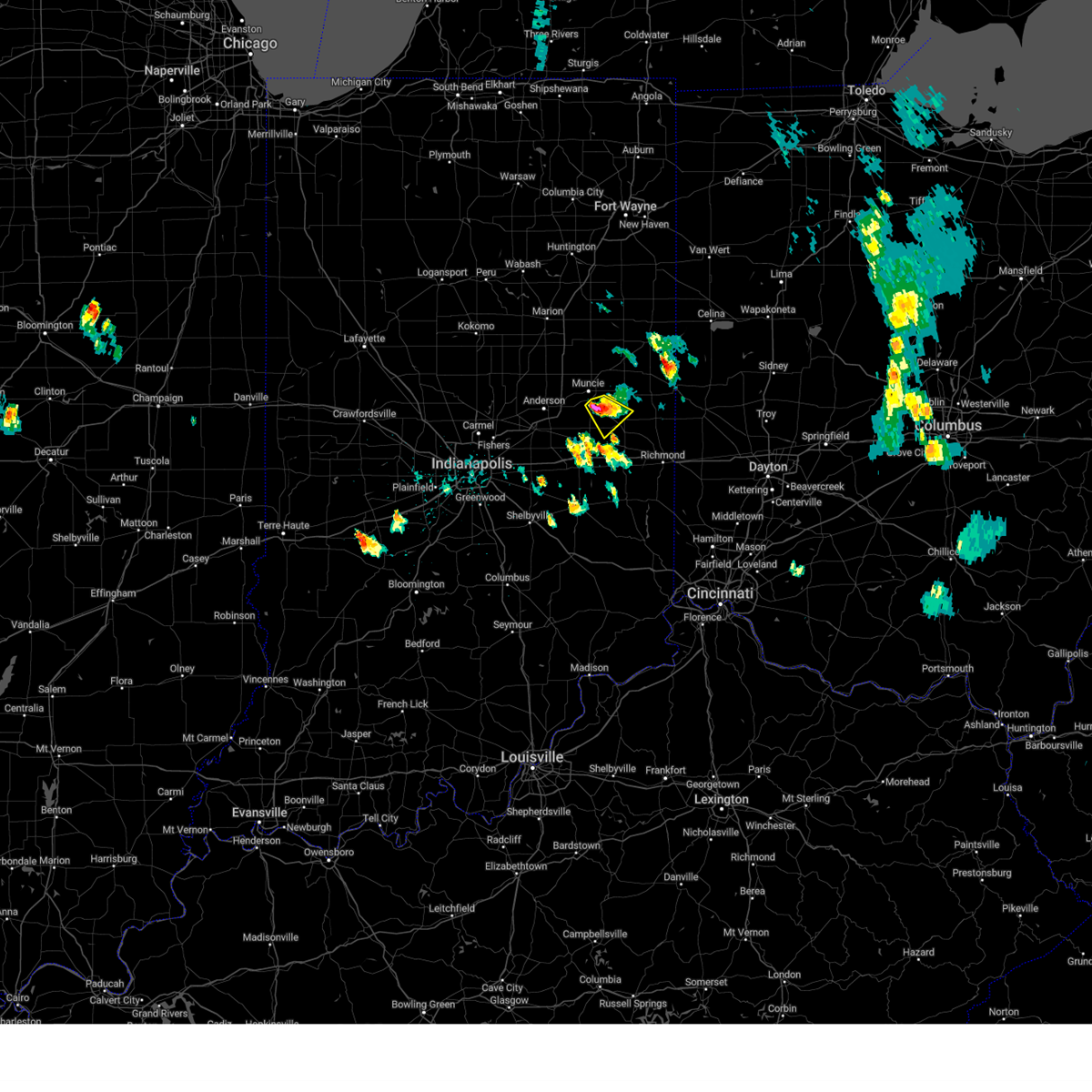 At 927 pm edt, a severe thunderstorm was located near muncie, moving east at 50 mph (radar indicated). Hazards include 60 mph wind gusts and quarter size hail. Hail damage to vehicles is expected. Expect wind damage to roofs, siding, and trees.
