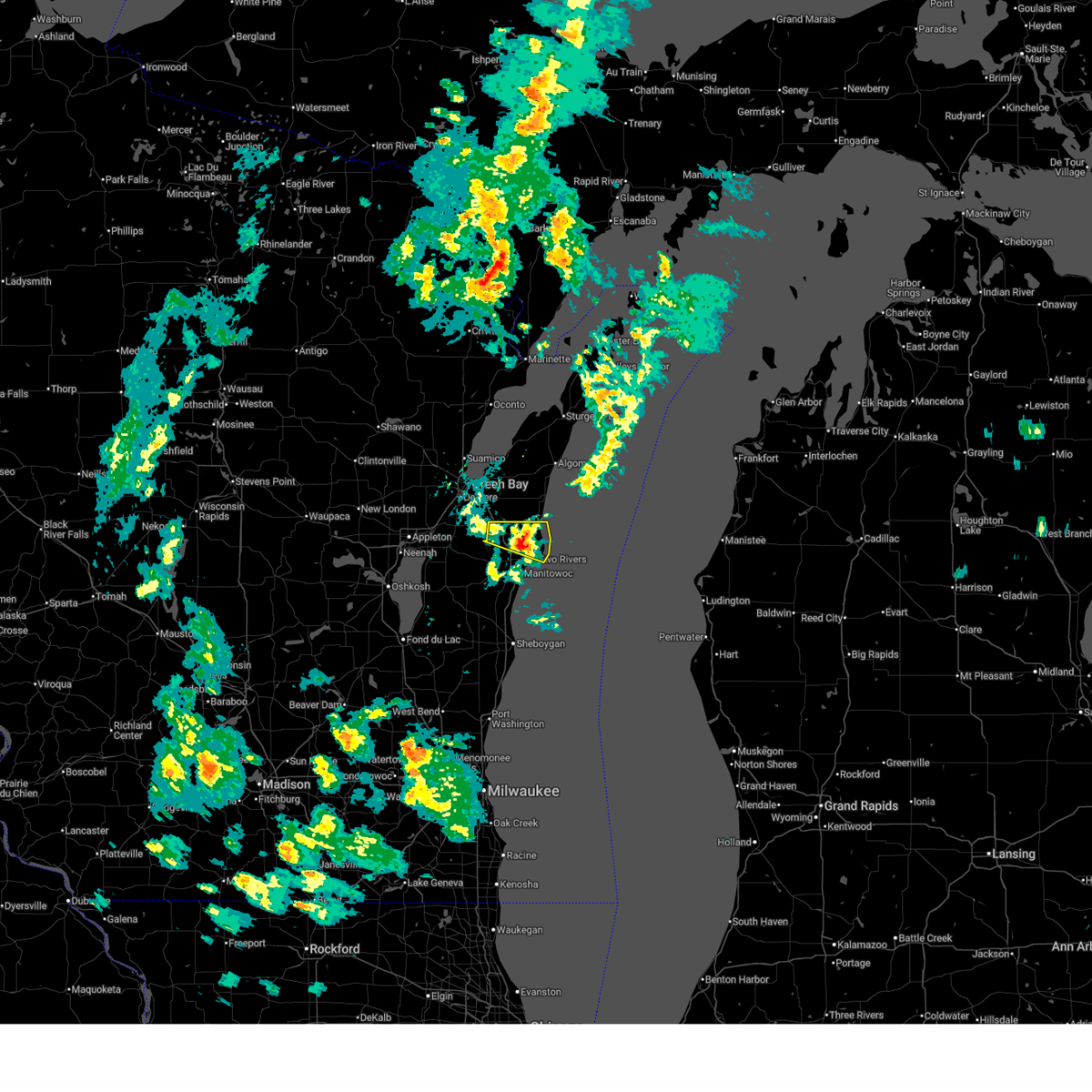 At 332 pm cdt, a severe thunderstorm was located near manitowoc, moving northeast at 45 mph (radar indicated). Hazards include 60 mph wind gusts and quarter size hail. Hail damage to vehicles is expected. expect wind damage to roofs, siding, and trees. this severe storm will be near, manitowoc around 335 pm cdt. two creeks around 350 pm cdt. Other locations impacted by this severe thunderstorm include st nazianz, mishicot, kellners corners, kellnersville, maribel, larrabee, two rivers, madsen, grimms, and taus.