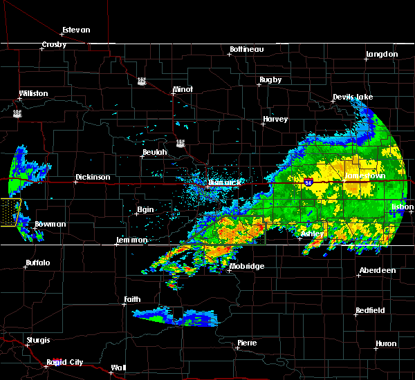 At 811 pm mdt, severe thunderstorms were located along a line extending from golva to 7 miles southwest of amidon to 9 miles north of camp crook, moving northeast at 50 mph (emergency management. at 810 pm mdt, the bowman county emergency manager reported 73 mph winds 4 miles southwest of rhame). Hazards include 70 mph wind gusts and ping pong ball size hail. People and animals outdoors will be injured. expect hail damage to roofs, siding, windows, and vehicles. expect considerable tree damage. wind damage is also likely to mobile homes, roofs, and outbuildings. these severe storms will be near, amidon around 820 pm mdt. Other locations impacted by these severe thunderstorms include sunset butte, bowman haley dam, alpha, griffin, buffalo springs, three v crossing, pretty butte and gascoyne.