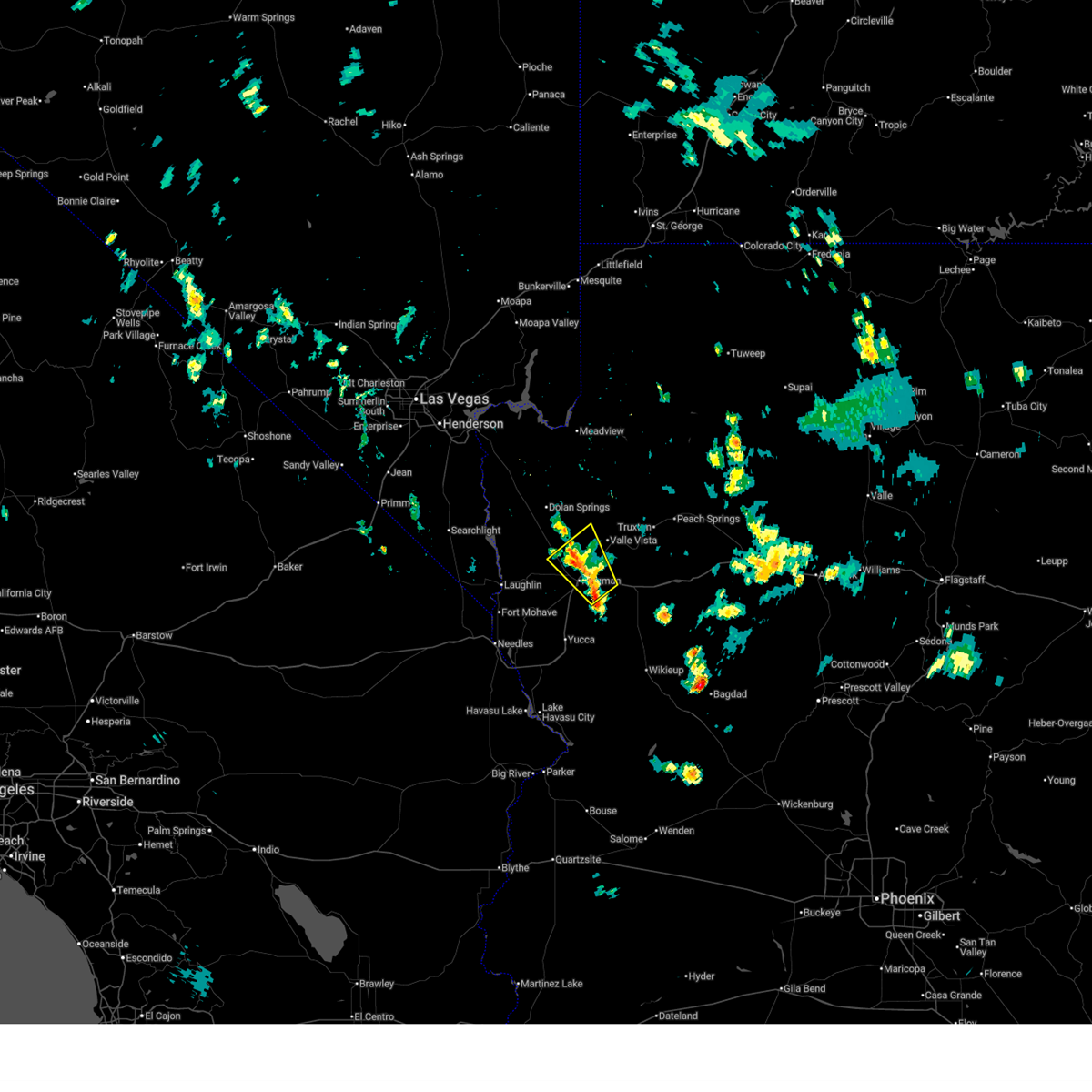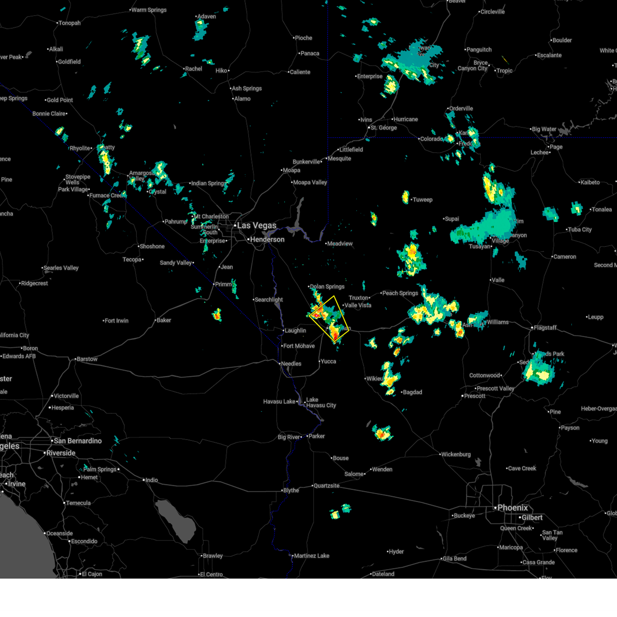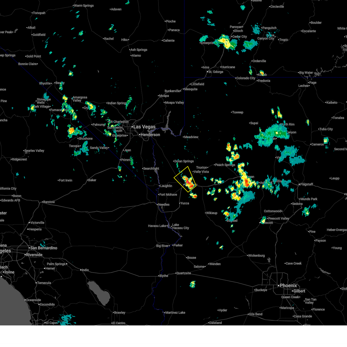 At 141 am pdt/141 am mst/, doppler radar indicated a severe thunderstorm capable of producing quarter size hail and damaging winds in excess of 60 mph. this storm was located near golden valley, moving east at 25 mph. strong thunderstorm winds continue to impact the surrounding areas, especially near bullhead city and laughlin. locations impacted include, bullhead city, kingman, laughlin, katherine landing, yucca, topock, needles, oatman, chloride, cottonwood cove campground, hualapai mountain park, new kingman-butler, and highway 95 and i-40.