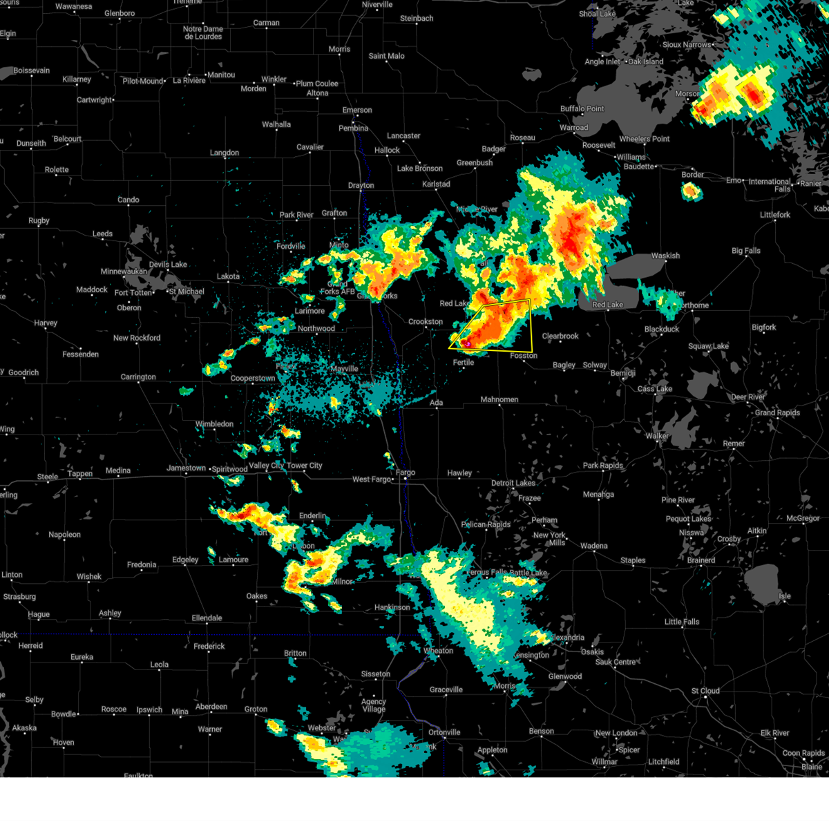 At 1237 pm cdt, a severe thunderstorm capable of producing a tornado was located near fertile, or 40 miles southeast of grand forks, moving northeast at 40 mph (radar indicated rotation). Hazards include tornado. Flying debris will be dangerous to those caught without shelter. mobile homes will be damaged or destroyed. damage to roofs, windows, and vehicles will occur. tree damage is likely. Locations impacted include, fertile, mentor, maple bay, beltrami, melvin, and dugdale.