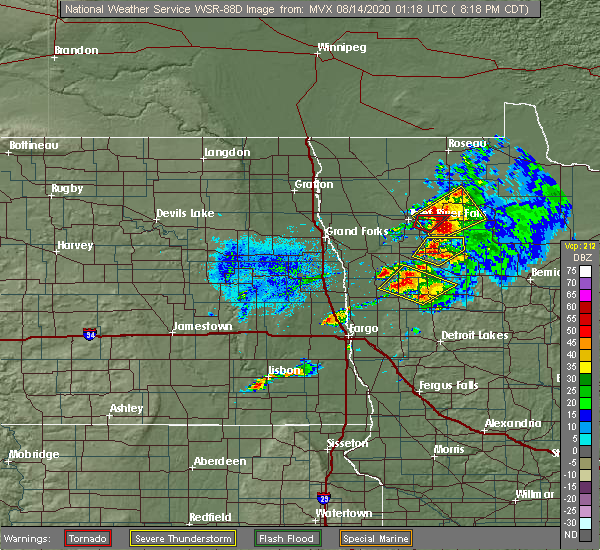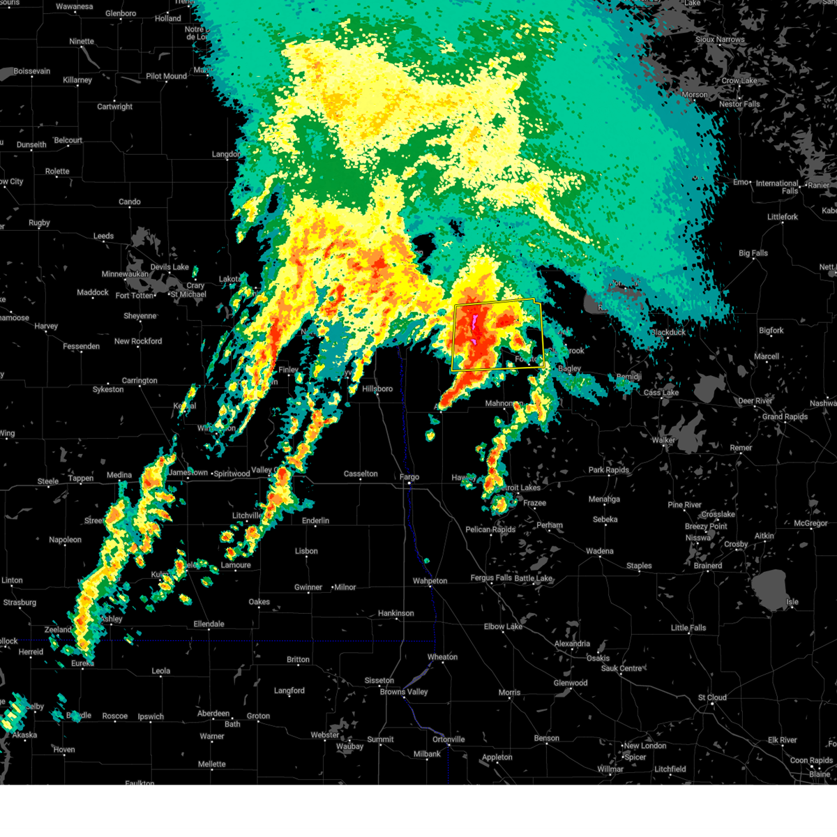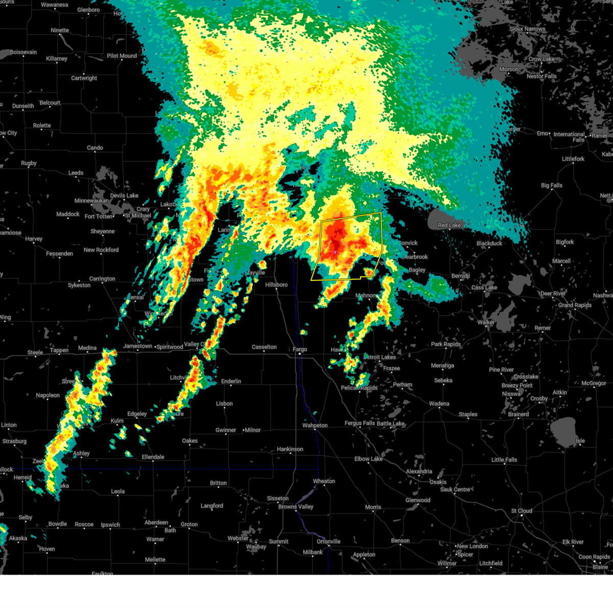 Svrfgf the national weather service in grand forks has issued a * severe thunderstorm warning for, south central marshall county in northwestern minnesota, red lake county in northwestern minnesota, clay county in northwestern minnesota, norman county in northwestern minnesota, polk county in northwestern minnesota, mahnomen county in northwestern minnesota, becker county in northwestern minnesota, western pennington county in northwestern minnesota, southwestern clearwater county in northwestern minnesota, southern grand forks county in northeastern north dakota, eastern cass county in southeastern north dakota, traill county in southeastern north dakota, * until 1245 am cdt. * at 1149 pm cdt, severe thunderstorms were located along a line extending from near kempton to near hillsboro to near gardner to near mapleton, moving east at 80 mph. these are destructive storms for eastern north dakota and northwest minnesota (public). Hazards include 80 mph wind gusts. Flying debris will be dangerous to those caught without shelter. mobile homes will be heavily damaged. expect considerable damage to roofs, windows, and vehicles. extensive tree damage and power outages are likely. severe thunderstorms will be near, fargo, west fargo, and hillsboro around 1150 pm cdt. moorhead, dilworth, and halstad around 1155 pm cdt. glyndon, thompson, and climax around 1200 am cdt. grand forks, east grand forks, and ada around 1205 am cdt. hawley, twin valley, and ulen around 1210 am cdt. other locations impacted by these severe thunderstorms include thief river falls airport, american crystal sugar, grand forks airport, moorhead airport, and west argusville. this includes the following highways, interstate 29 between mile markers 57 and 149. interstate 94 in north dakota between mile markers 337 and 15. Interstate 94 in minnesota between mile markers 337 and 15.