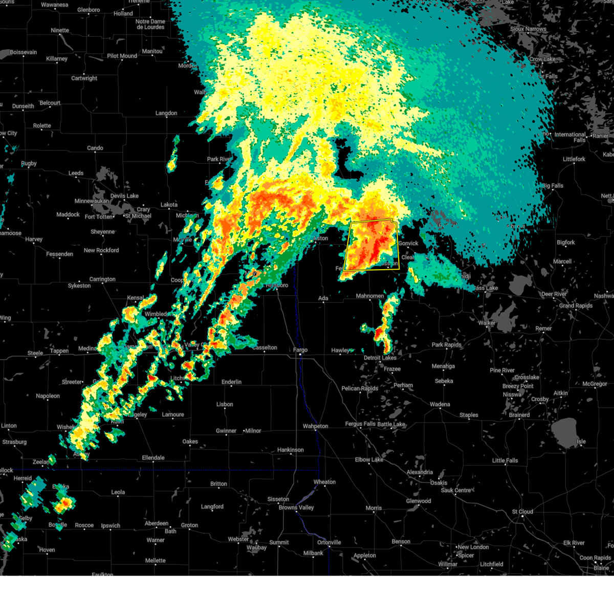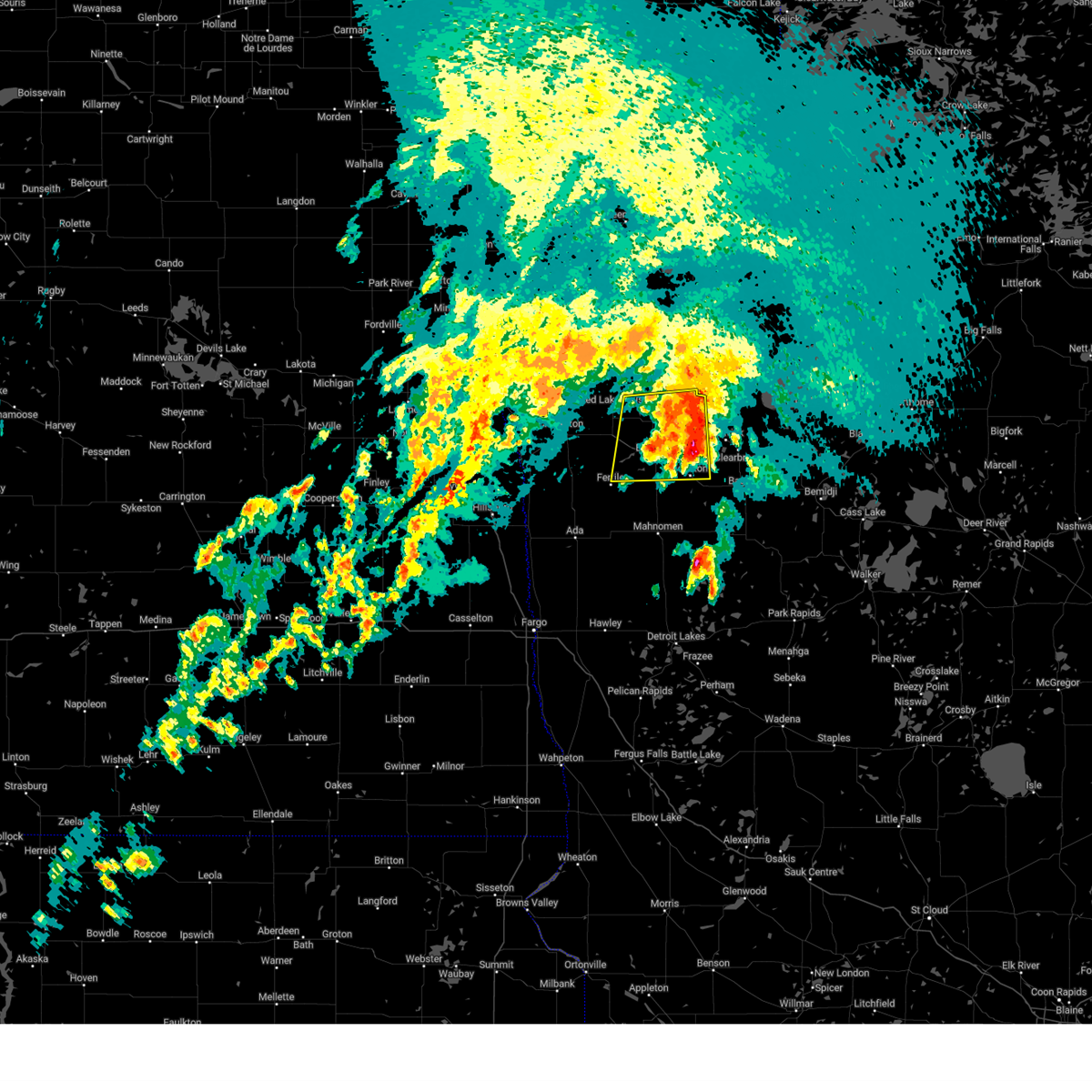 At 923 pm cdt, severe thunderstorms were located along a line extending from near clifford to near borup, moving north at 60 mph (radar indicated). Hazards include 60 mph wind gusts and penny size hail. Expect damage to roofs, siding, and trees. severe thunderstorms will be near, clifford around 925 pm cdt. twin valley and roseville around 930 pm cdt. ada, portland and golden lake around 935 pm cdt. gary, hadler and lockhart around 940 pm cdt. hatton and flaming around 945 pm cdt. This includes interstate 29 between mile markers 85 and 153.
