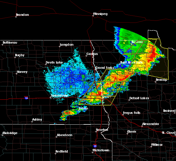 At 424 am cdt, severe thunderstorms were located along a line extending from near ardoch to near key west to 6 miles northwest of lockhart, moving east at 70 mph. these are very dangerous storms (radar indicated). Hazards include 80 mph wind gusts and quarter size hail. Flying debris will be dangerous to those caught without shelter. mobile homes will be heavily damaged. expect considerable damage to roofs, windows, and vehicles. extensive tree damage and power outages are likely. severe thunderstorms will be near, key west, sherack and angus around 425 am cdt. beltrami, euclid and greenview around 430 am cdt. big woods, melvin and dorothy around 435 am cdt. fertile and wylie around 440 am cdt. argyle, st. hilaire and maple bay around 445 am cdt. other locations impacted by these severe thunderstorms include thief river falls airport. This includes interstate 29 between mile markers 142 and 174.