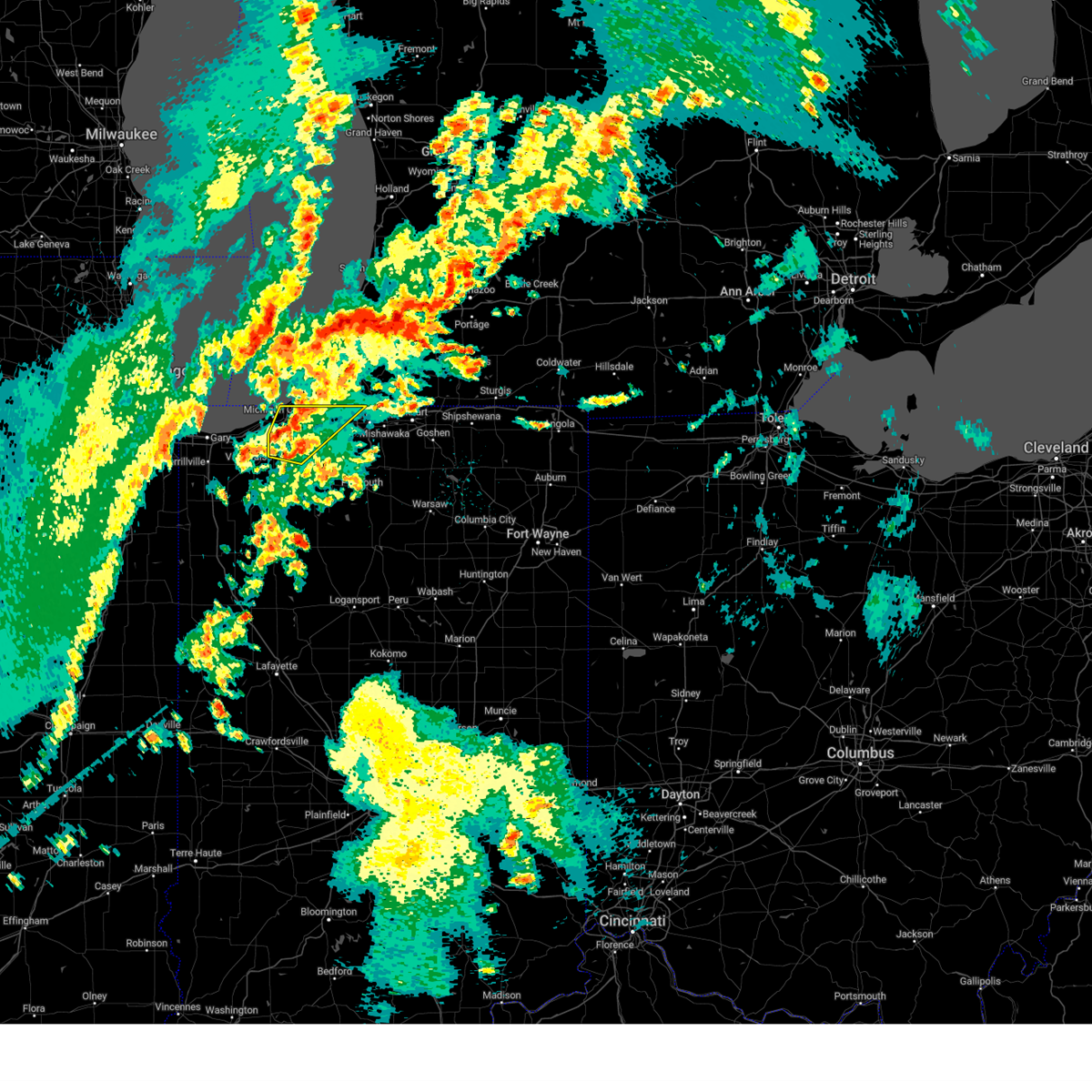 At 835 pm est/735 pm cst/, severe thunderstorms were located along a line extending from near benton heights to near buchanan to westville, moving east at 65 mph (radar indicated). Hazards include 60 mph wind gusts and quarter size hail. Hail damage to vehicles is expected. expect wind damage to roofs, siding, and trees. locations impacted include, south bend, michigan city, la porte, niles, dowagiac, westville, buchanan, trail creek, fair plain, bridgman, new buffalo, new carlisle, berrien springs, three oaks, long beach, stevensville, pottawattamie park, shorewood-tower hill, shorewood-tower hills-harbert and bertrand. this includes the following highways, interstate 80 in indiana between mile markers 38 and 74. interstate 94 in indiana between mile markers 33 and 45. Interstate 94 in michigan between mile markers 0 and 30.