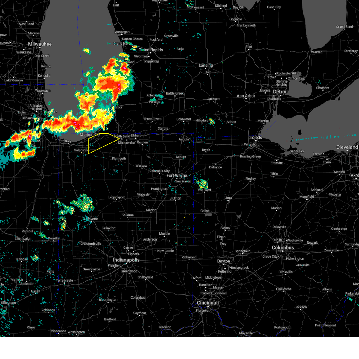 At 914 pm edt/814 pm cdt/, severe thunderstorms were located along a line extending from near new buffalo to near long beach to beverly shores, moving southeast at 40 mph. these are destructive storms for laporte county (radar indicated). Hazards include 80 mph wind gusts and quarter size hail. Flying debris will be dangerous to those caught without shelter. mobile homes will be heavily damaged. expect considerable damage to roofs, windows, and vehicles. extensive tree damage and power outages are likely. locations impacted include, michigan city, la porte, niles, westville, buchanan, trail creek, bridgman, new buffalo, new carlisle, three oaks, long beach, pottawattamie park, shorewood-tower hill, shorewood-tower hills-harbert, dayton, galien, michiana shores, grand beach, kingsbury, and michiana. this includes the following highways, interstate 80 in indiana between mile markers 38 and 71. interstate 94 in indiana between mile markers 33 and 45. Interstate 94 in michigan between mile markers 0 and 16.