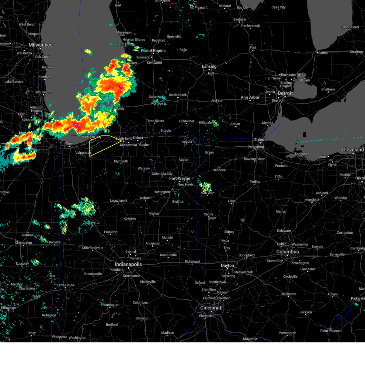 Svriwx the national weather service in northern indiana has issued a * severe thunderstorm warning for, st. joseph county in north central indiana, northeastern starke county in northwestern indiana, northwestern marshall county in north central indiana, la porte county in northwestern indiana, berrien county in southwestern michigan, * until 645 pm edt/545 pm cdt/. * at 544 pm edt/444 pm cdt/, severe thunderstorms were located along a line extending from 8 miles northwest of beverly shores to near kouts, moving northeast at 40 mph (trained weather spotters). Hazards include 60 mph wind gusts. expect damage to roofs, siding, and trees