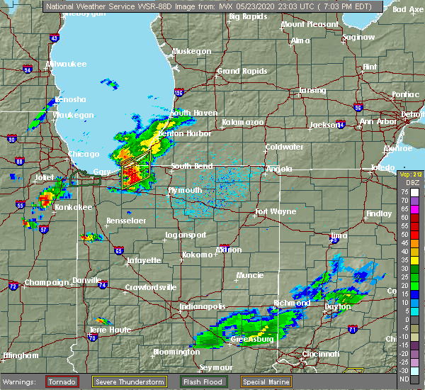 Svriwx the national weather service in northern indiana has issued a * severe thunderstorm warning for, northwestern st. joseph county in north central indiana, la porte county in northwestern indiana, southern berrien county in southwestern michigan, * until 1000 pm edt/900 pm cdt/. * at 853 pm edt/753 pm cdt/, severe thunderstorms were located along a line extending from 15 miles northwest of new buffalo to 8 miles northwest of long beach to near ogden dunes, moving east at 35 mph. strong outflow winds will also precede this line of severe thunderstorms (radar indicated). Hazards include 70 mph wind gusts and quarter size hail. Hail damage to vehicles is expected. expect considerable tree damage. Wind damage is also likely to mobile homes, roofs, and outbuildings.