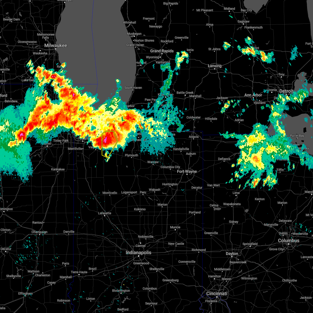 Svriwx the national weather service in northern indiana has issued a * severe thunderstorm warning for, st. joseph county in north central indiana, northwestern pulaski county in northwestern indiana, starke county in northwestern indiana, northwestern marshall county in north central indiana, la porte county in northwestern indiana, berrien county in southwestern michigan, * until 500 pm edt/400 pm cdt/. * at 351 pm edt/251 pm cdt/, severe thunderstorms were located along a line extending from near portage to rensselaer, moving northeast at 60 mph (radar indicated). Hazards include 60 mph wind gusts and nickel size hail. expect damage to roofs, siding, and trees