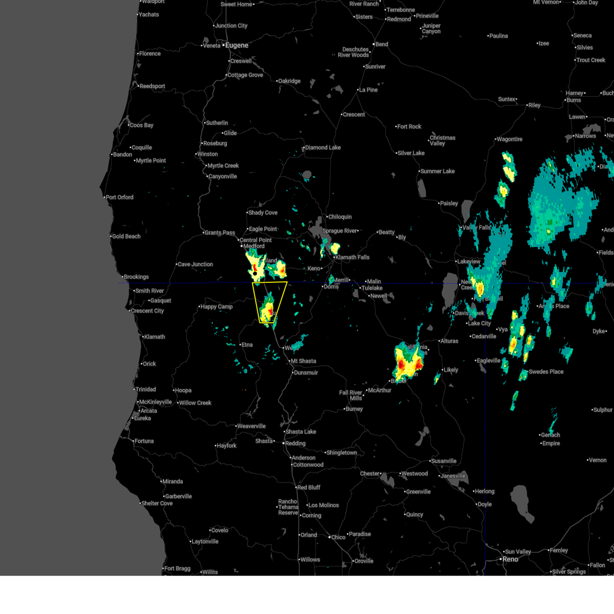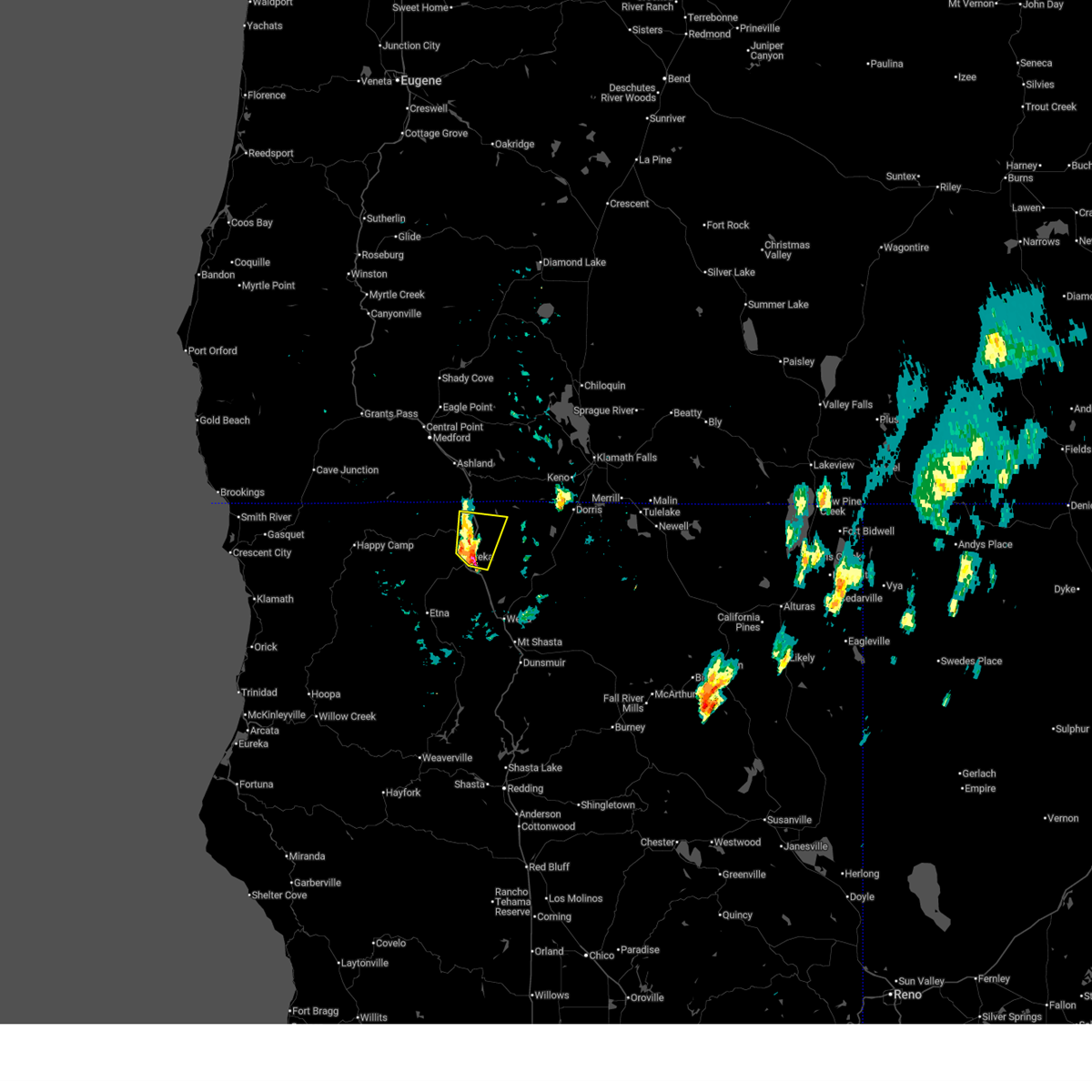 At 904 pm pdt, a severe thunderstorm was located over yreka, moving north at 35 mph (radar indicated). Hazards include 60 mph wind gusts and quarter size hail. Hail damage to vehicles is expected. expect wind damage to roofs, siding, and trees. Locations impacted include, yreka and montague.