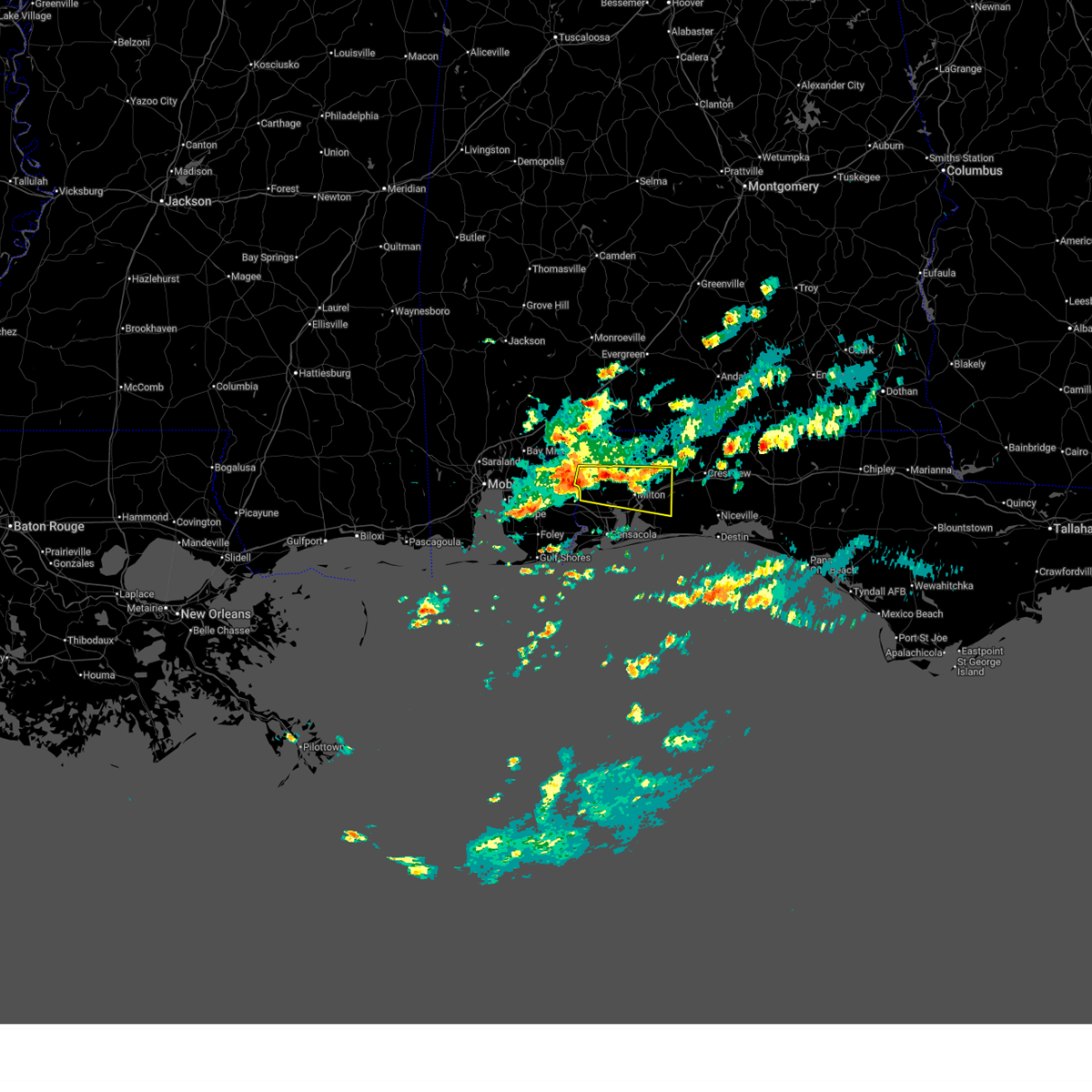 At 1023 am cdt, severe thunderstorms were located along a line extending from 4 miles north of roeville to 4 miles south of floridatown to 5 miles southwest of bon secour, moving southeast at 40 mph. these are destructive storms for locations near whiting field, allentown, baker (radar indicated). Hazards include 80 mph wind gusts. Flying debris will be dangerous to those caught without shelter. mobile homes will be heavily damaged. expect considerable damage to roofs, windows, and vehicles. extensive tree damage and power outages are likely. Locations impacted include, pensacola, ferry pass, brent, west pensacola, wright, fort walton beach, ensley, warrington, gonzalez, gulf shores, foley, pace, milton, gulf breeze, orange beach, goulding, mary esther, robertsdale, bagdad, and ocean city.