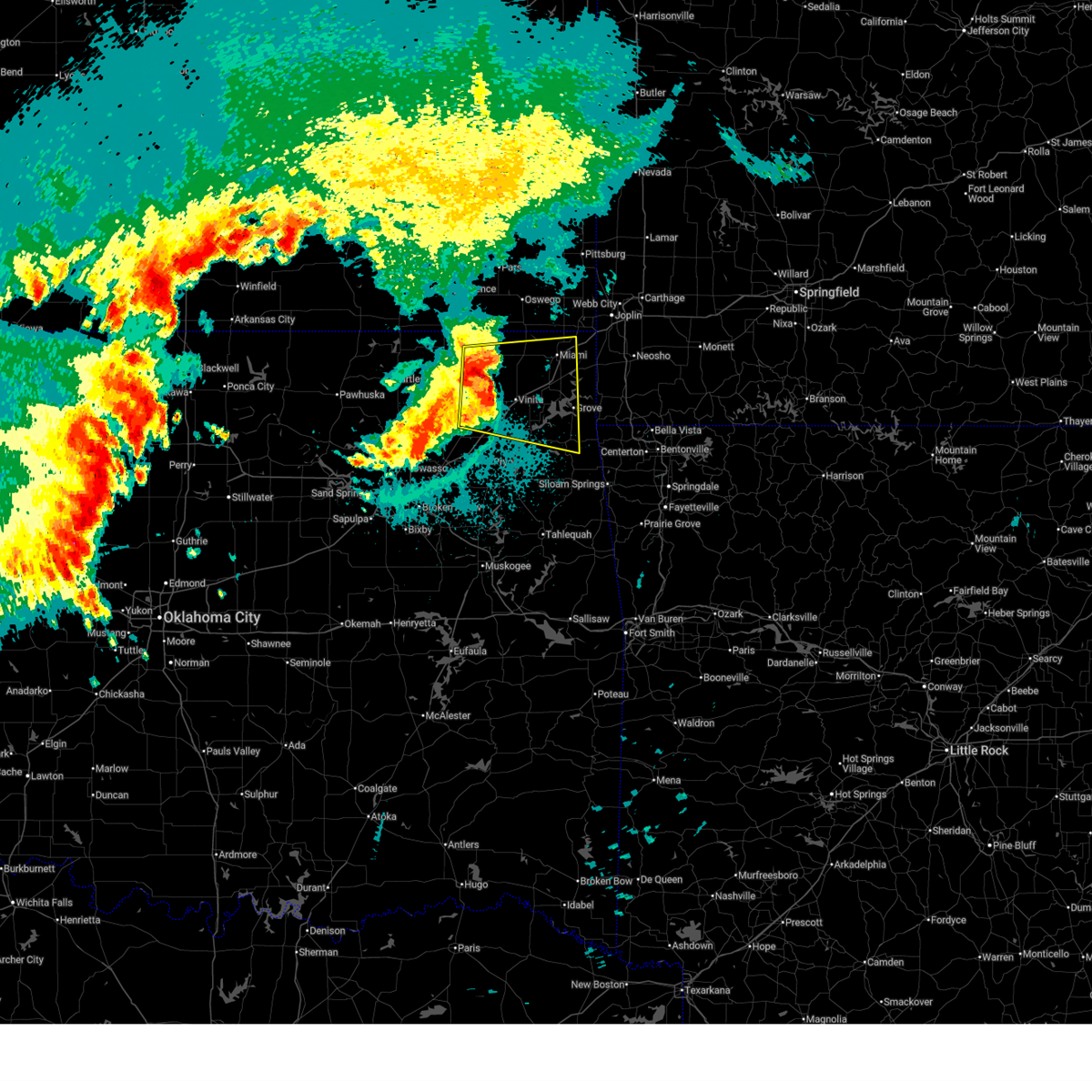 At 1250 am cdt, a confirmed tornado was located 4 miles east of salina, moving east at 50 mph (radar confirmed tornado). Hazards include damaging tornado and golf ball size hail. Flying debris will be dangerous to those caught without shelter. mobile homes will be damaged or destroyed. damage to roofs, windows, and vehicles will occur. tree damage is likely. Locations impacted include, jay, locust grove, salina, colcord, kansas, leach, rose, lake eucha state park, and snowdale state park.