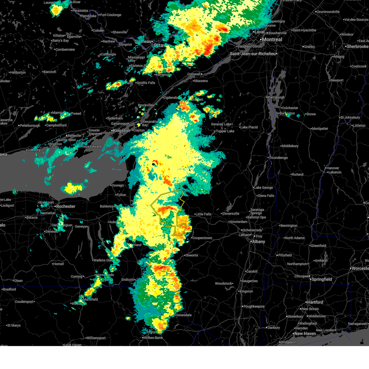 At 329 pm edt, a severe thunderstorm was located over madison, or near hamilton, moving east at 35 mph (radar indicated). Hazards include 60 mph wind gusts and very heavy rain. Expect damage to trees, and power lines, and flooding. this severe thunderstorm will be near, waterville around 345 pm edt. clinton around 350 pm edt. bridgewater around 355 pm edt. new hartford and clayville around 400 pm edt. Utica around 405 pm edt.