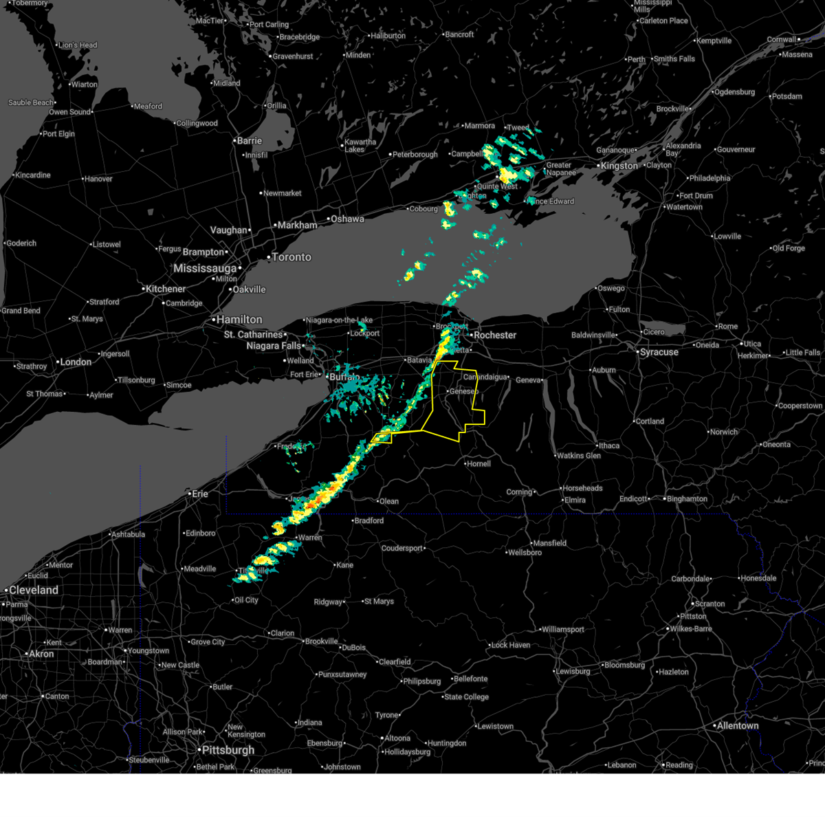 At 430 pm edt, doppler radar indicated a severe thunderstorm capable of producing damaging winds in excess of 60 mph. this storm was located over warsaw, or 12 miles northwest of letchworth state park, moving east at 50 mph. nickel size hail may also accompany the damaging winds. locations impacted include, geneseo, dansville, letchworth state park, perry, warsaw, mount morris, attica and conesus. a tornado watch remains in effect until 1100 pm edt for western new york.