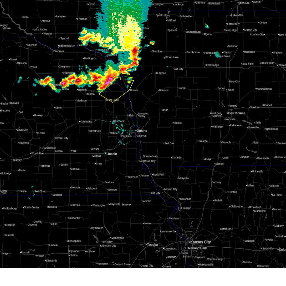 At 1021 pm cdt, a severe thunderstorm was located 4 miles northwest of mondamin, or 33 miles north of omaha, moving east at 40 mph. this is a very dangerous storm (radar indicated). Hazards include 80 mph wind gusts and half dollar size hail. Flying debris will be dangerous to those caught without shelter. mobile homes will be heavily damaged. expect considerable damage to roofs, windows and vehicles. extensive tree damage and power outages are likely. locations impacted include, tekamah, craig, oakland, herman, pelican point state recreation area and summit lake state recreation area. this includes the following highways, highway 75 in nebraska between mile markers 120 and 141. highway 77 in nebraska between milemarkers 139 and 145. Interstate 29 near mile marker 99.