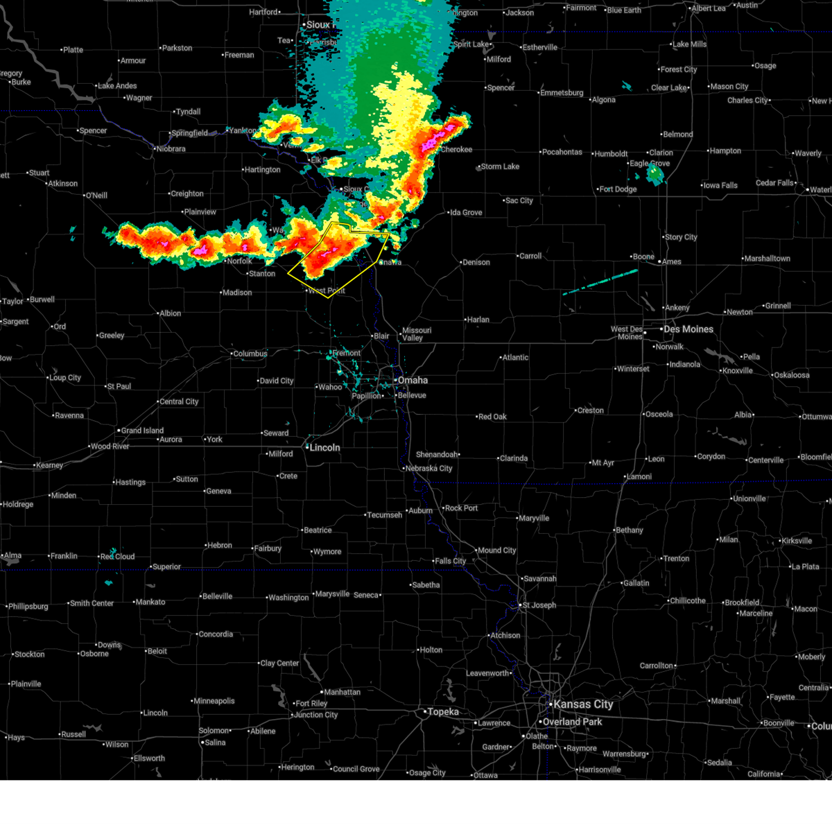 At 141 am cdt, a severe thunderstorm capable of producing a tornado was located 3 miles south of dodge, or 14 miles southwest of west point, moving east at 55 mph (radar indicated rotation). Hazards include tornado. Flying debris will be dangerous to those caught without shelter. mobile homes will be damaged or destroyed. damage to roofs, windows, and vehicles will occur. tree damage is likely. this dangerous storm will be near, dodge and snyder around 145 am cdt. scribner around 150 am cdt. Other locations in the path of this tornadic thunderstorm include uehling.