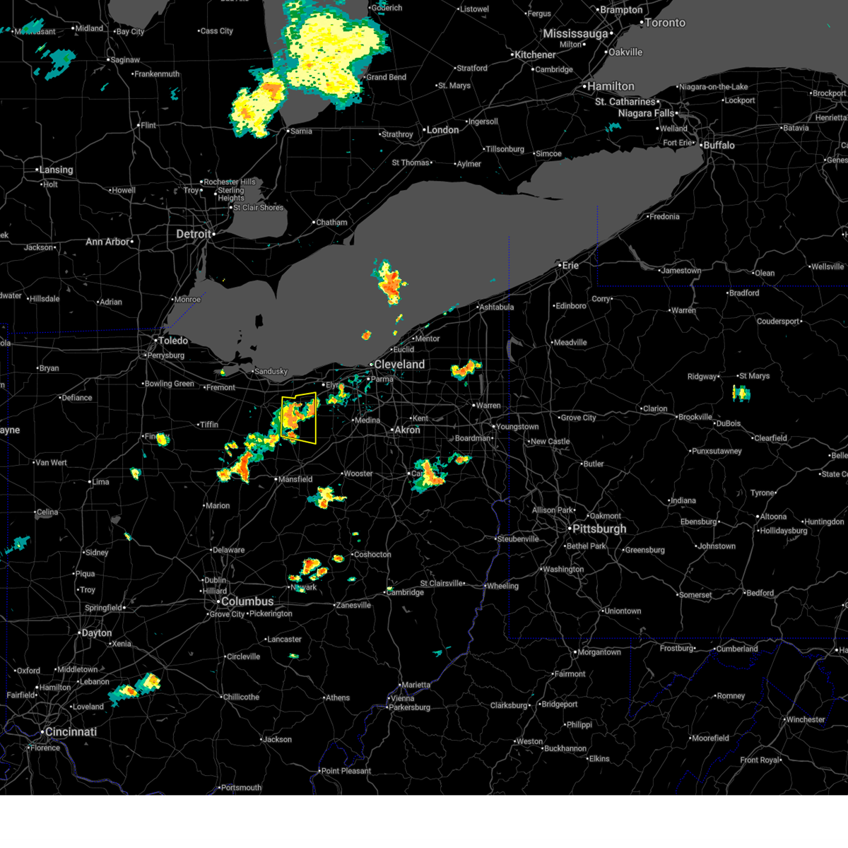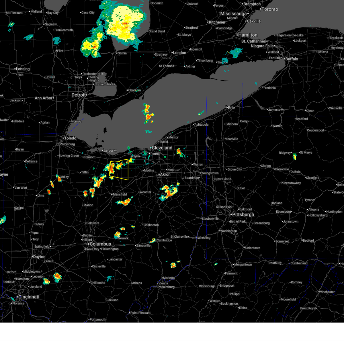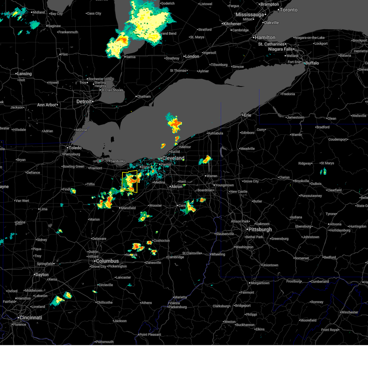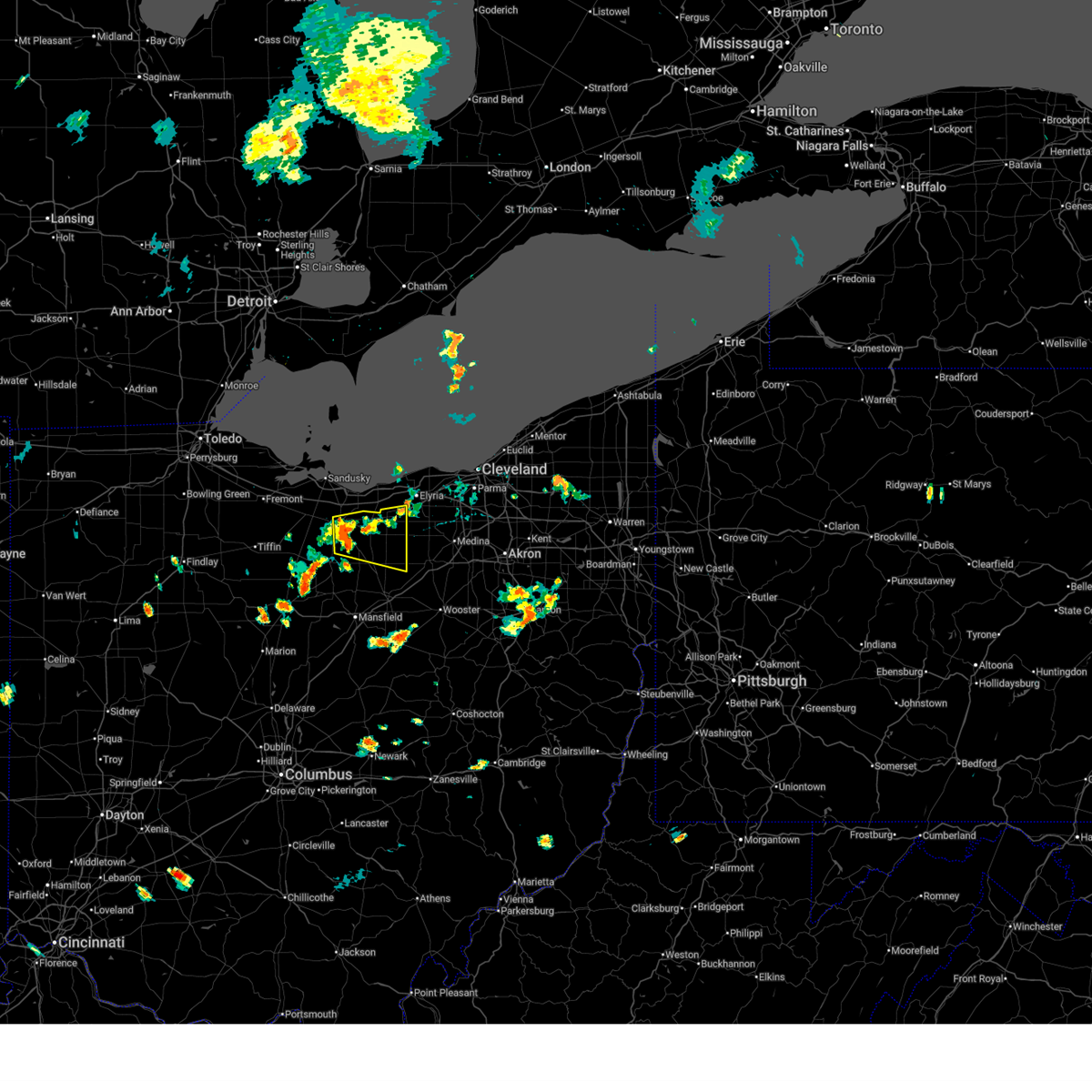 At 835 pm edt, a severe thunderstorm capable of producing a tornado was located near wakeman, or 7 miles south of vermilion, moving northeast at 50 mph (radar indicated rotation). Hazards include tornado. Flying debris will be dangerous to those caught without shelter. mobile homes will be damaged or destroyed. damage to roofs, windows, and vehicles will occur. tree damage is likely. this dangerous storm will be near, lorain, elyria, western vermilion, vermilion, and amherst around 840 pm edt. north ridgeville and grafton around 845 pm edt. avon lake around 850 pm edt. Other locations impacted by this tornadic thunderstorm include lagrange, south amherst, avon, pittsfield, birmingham, eaton, kipton, sheffield, oberlin, and sheffield lake.