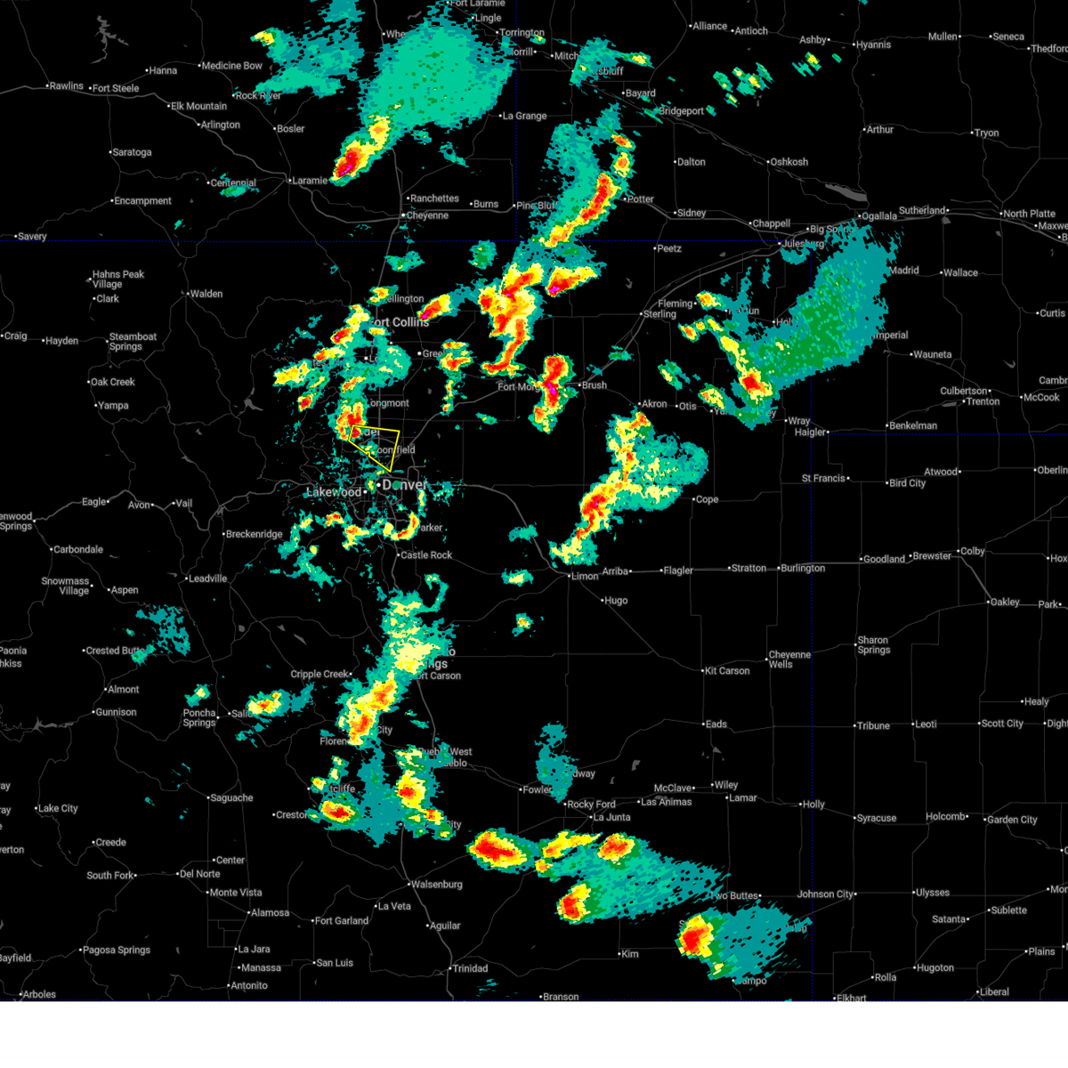 At 906 pm mdt, a severe thunderstorm was located over broomfield, or 17 miles northwest of denver, moving east at 25 mph (trained weather spotters). Hazards include half dollar size hail. Damage to vehicles is expected. Locations impacted include, thornton, northwestern arvada, westminster, southern boulder, broomfield, northern commerce city, northglenn, brighton, lafayette, louisville, erie, superior, federal heights, firestone, frederick, dacono, eldorado springs and rocky flats.