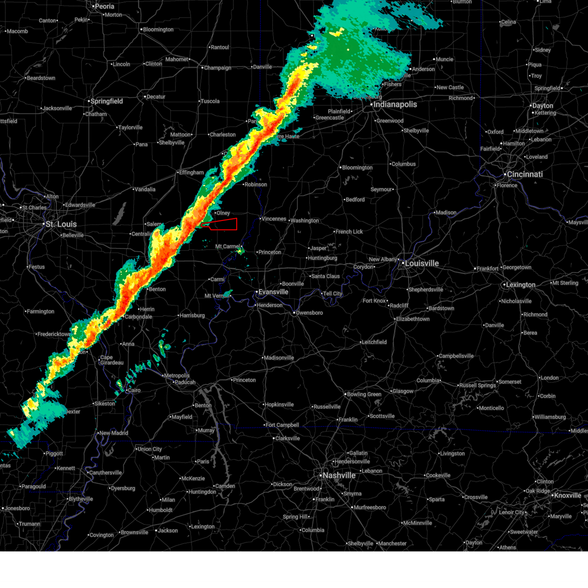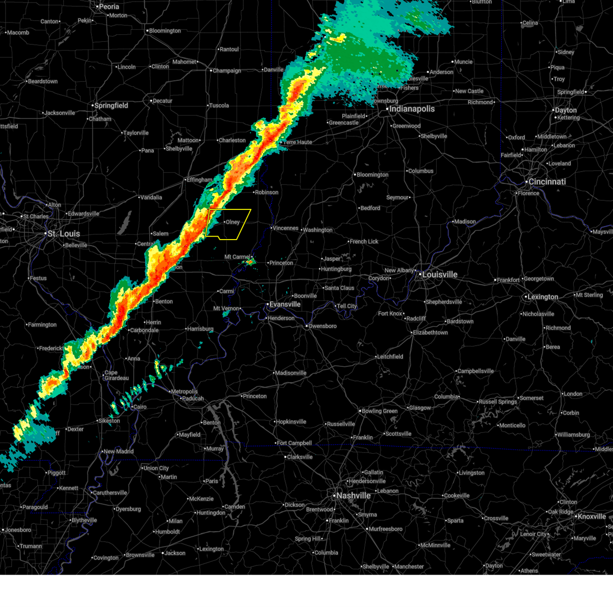 At 443 pm cdt, severe thunderstorms were located along a line extending from near russellville to olney, moving south at 50 mph. severe thunderstorm winds are occuring 15 to 20 minutes ahead of the rain (radar indicated). Hazards include 80 mph wind gusts and quarter size hail. Flying debris will be dangerous to those caught without shelter. mobile homes will be heavily damaged. expect considerable damage to roofs, windows, and vehicles. extensive tree damage and power outages are likely. locations impacted include, olney, robinson, lawrenceville, sumner, oblong, palestine, st. francisville, flat rock, ste. Marie, parkersburg, claremont, calhoun, new hebron, west liberty, chauncey, hardinville, dundas, birds, stoy and petrolia.