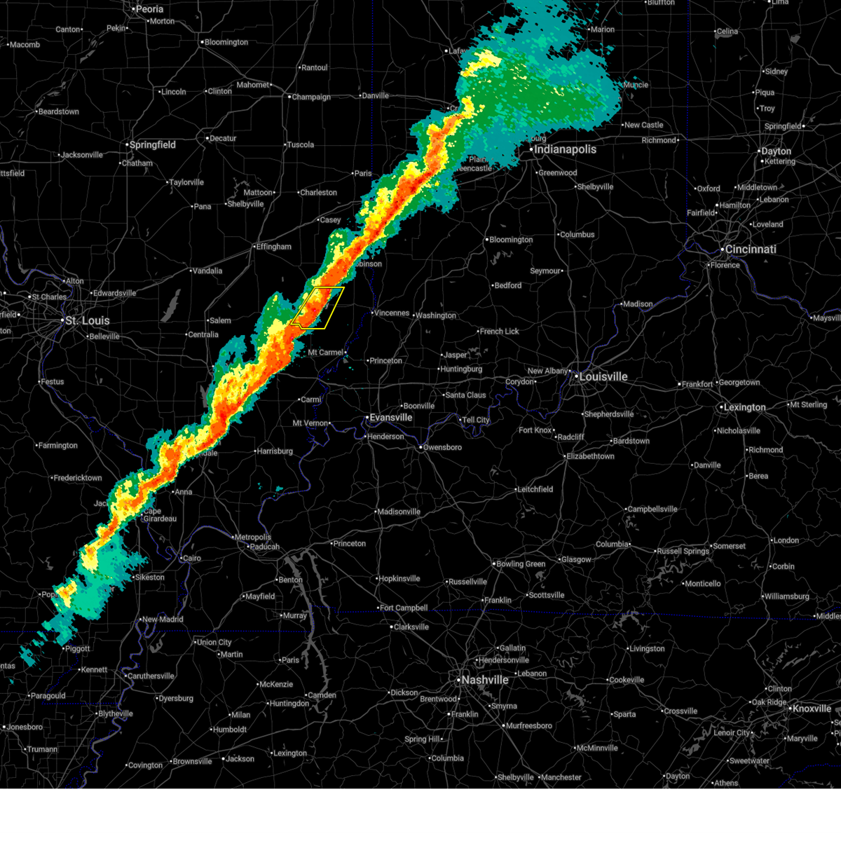 The tornado threat has diminished and the tornado warning has been cancelled. however, large hail and damaging winds remain likely and a severe thunderstorm warning remains in effect for the area. brief tornadic circulations could still develop within this line. a tornado watch remains in effect until 800 pm cst for southeastern illinois. remember, a tornado warning still remains in effect for portions of northern lawrence county.