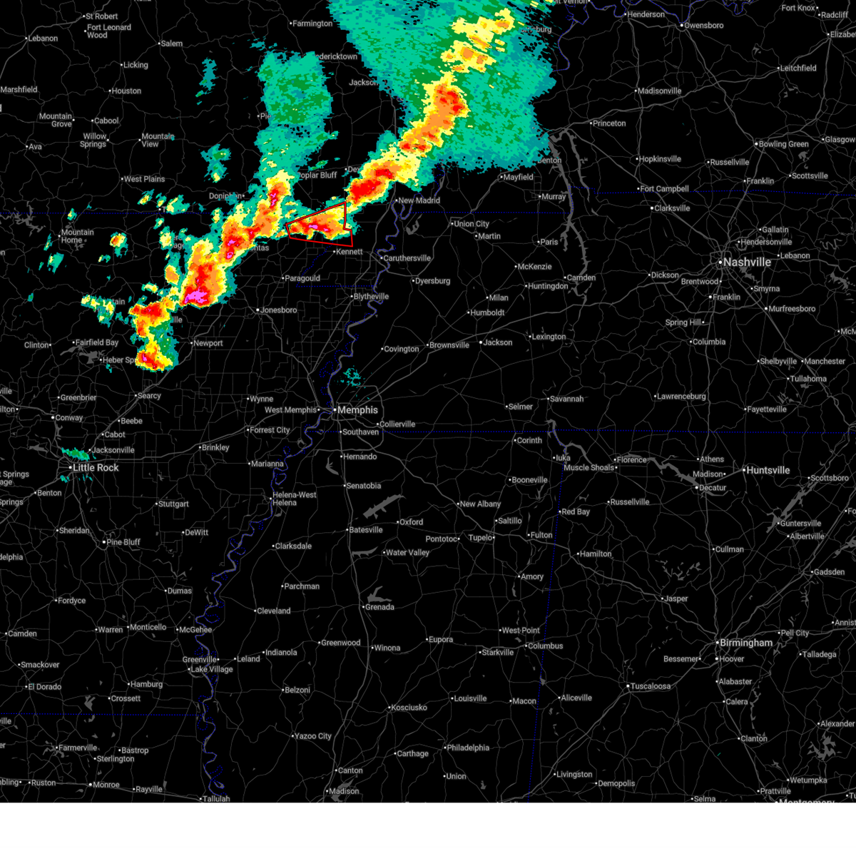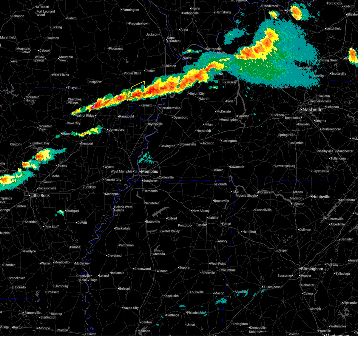 At 117 am cdt, a severe thunderstorm producing a tornado was located near beech grove, or near crowleys ridge state park, moving northeast at 55 mph (radar indicated rotation). Hazards include tornado. Flying debris will be dangerous to those caught without shelter. mobile homes will be damaged or destroyed. damage to roofs, windows, and vehicles will occur. tree damage is likely. this dangerous storm will be near, oak grove heights and lafe around 125 am cdt. marmaduke around 135 am cdt. rector around 140 am cdt. greenway around 150 am cdt. kennett around 155 am cdt. holcomb around 200 am cdt. Other locations impacted by this tornadic thunderstorm include ipley, octa, scobeville, stonewall, vincit, heubner, fritz, bard, case and lorine.