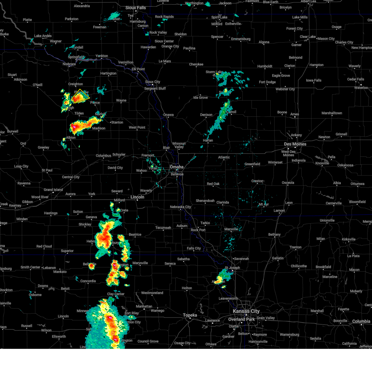 At 940 pm cdt, a severe thunderstorm was located 11 miles northeast of oakdale, or 22 miles northwest of norfolk, moving northeast at 45 mph (trained weather spotters. 60 mph winds were reported 2 miles north of meadow grove). Hazards include 70 mph wind gusts and ping pong ball size hail. People and animals outdoors will be injured. expect hail damage to roofs, siding, windows, and vehicles. expect considerable tree damage. wind damage is also likely to mobile homes, roofs, and outbuildings. locations impacted include, pierce, neligh, plainview, osmond, oakdale, tilden, foster, mclean and willow creek state recreation area. this includes the following highways, highway 275 in nebraska between mile markers 34 and 57. highway 81 in nebraska between mile markers 169 and 177. highway 20 in nebraska between mile markers 349 and 373. A tornado watch remains in effect until 1100 pm cdt for northeastern nebraska.
