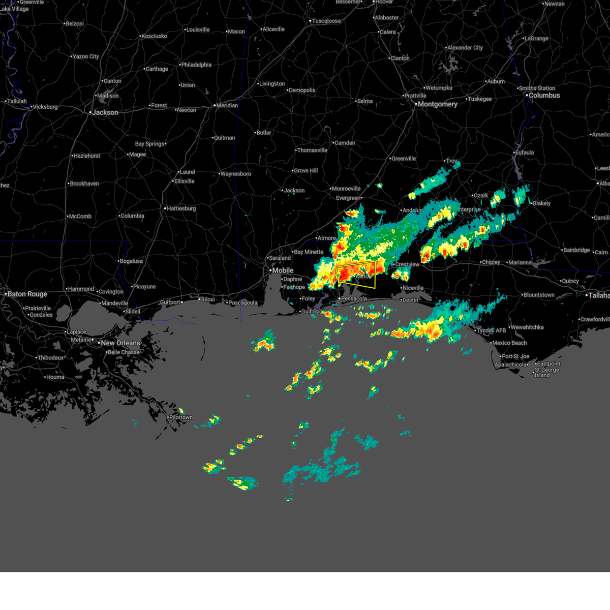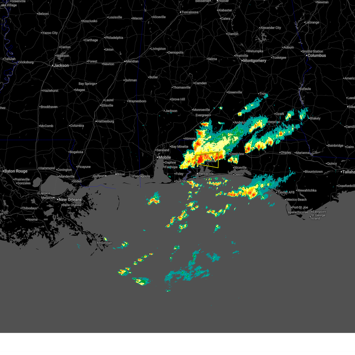 At 1023 am cdt, severe thunderstorms were located along a line extending from 4 miles north of roeville to 4 miles south of floridatown to 5 miles southwest of bon secour, moving southeast at 40 mph. these are destructive storms for locations near whiting field, allentown, baker (radar indicated). Hazards include 80 mph wind gusts. Flying debris will be dangerous to those caught without shelter. mobile homes will be heavily damaged. expect considerable damage to roofs, windows, and vehicles. extensive tree damage and power outages are likely. Locations impacted include, pensacola, ferry pass, brent, west pensacola, wright, fort walton beach, ensley, warrington, gonzalez, gulf shores, foley, pace, milton, gulf breeze, orange beach, goulding, mary esther, robertsdale, bagdad, and ocean city.