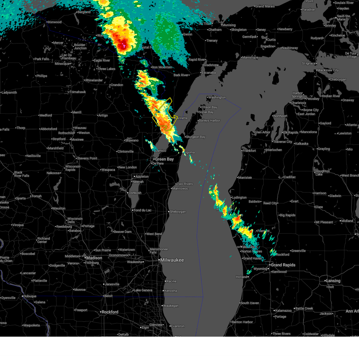 At 933 pm cdt, severe thunderstorms were located along a line extending from 7 miles west of stephenson to near marinette to 10 miles northeast of bay shore park to near green bay, moving southeast at 60 mph (radar indicated). Hazards include 70 mph wind gusts. Expect considerable tree damage. damage is likely to mobile homes, roofs, and outbuildings. Locations impacted include, marinette, sturgeon bay, bay shore park, menominee, oconto, algoma, luxemburg, crivitz, jacksonport and wausaukee.