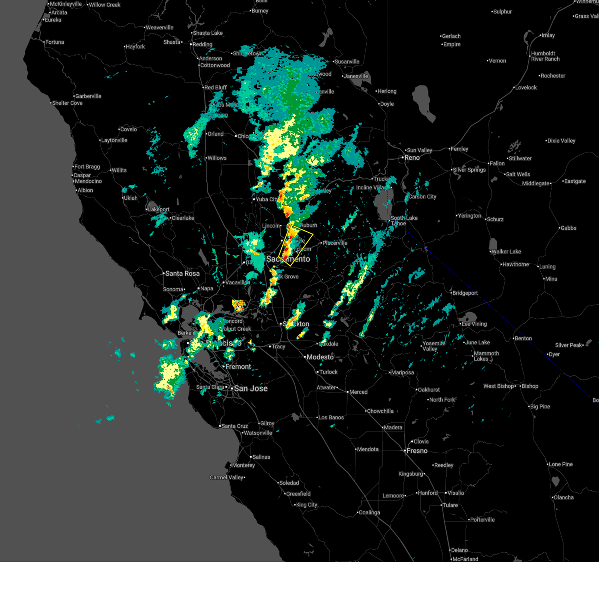 The severe thunderstorm warning for northeastern sacramento. southwestern placer and southwestern el dorado counties will expire at 330 pm pdt. this line of thunderstorms has weakened and the severe thunderstorm warning has been allowed to expire. this storm is still capable of producing heavy rain. small hail. And ponding of water on area.