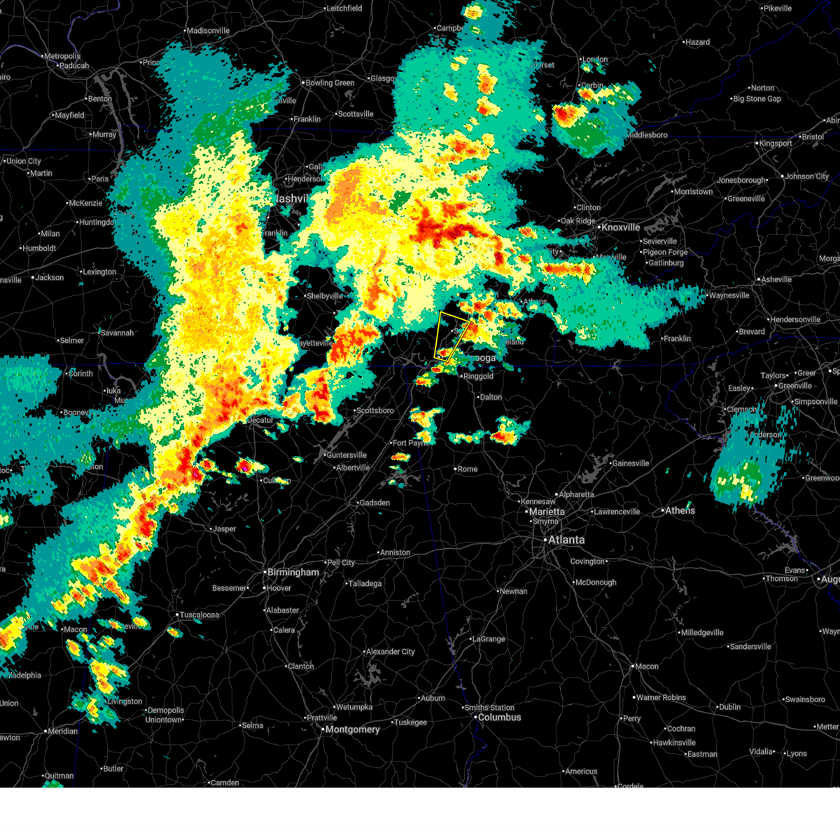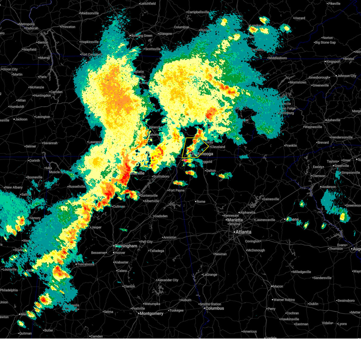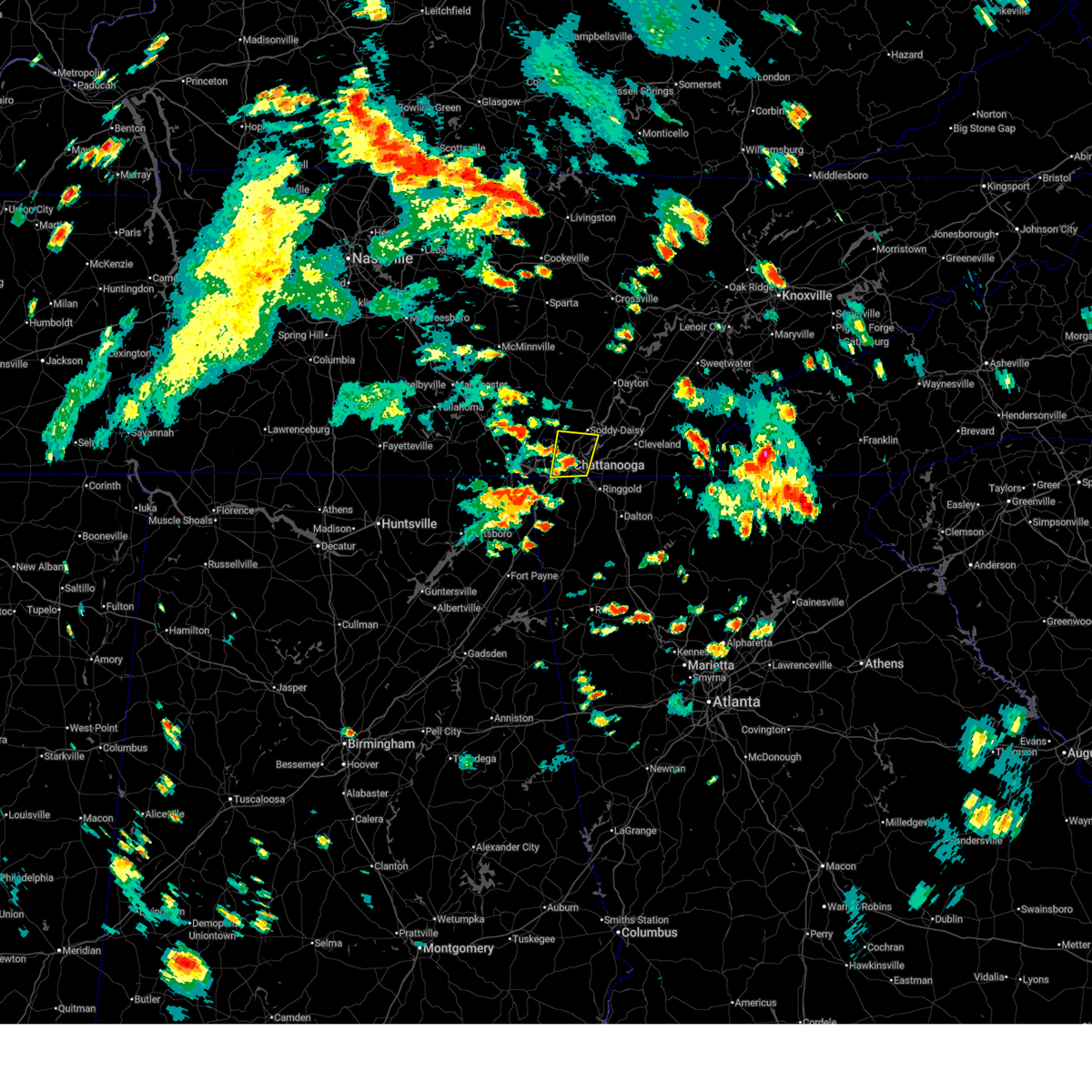 At 1234 am est, a severe thunderstorm capable of producing a tornado was located over chattanooga, moving northeast at 50 mph (radar indicated rotation). Hazards include tornado and quarter size hail. Flying debris will be dangerous to those caught without shelter. mobile homes will be damaged or destroyed. damage to roofs, windows, and vehicles will occur. tree damage is likely. this dangerous storm will be near, harrison around 1245 am est. lakesite around 1250 am est. cleveland, east cleveland and south cleveland around 100 am est. other locations impacted by this tornadic thunderstorm include mcdonald, ooltewah, middle valley, shady grove, hopewell, red bank, waterville, harrison bay s. p,. Falling water and lookout mountain.