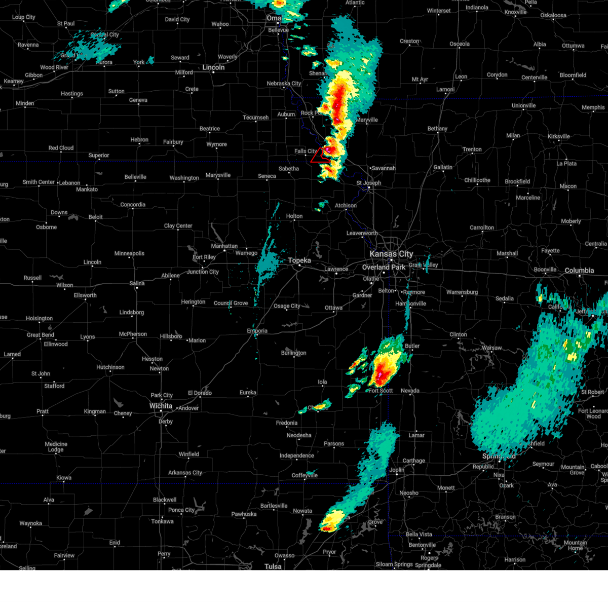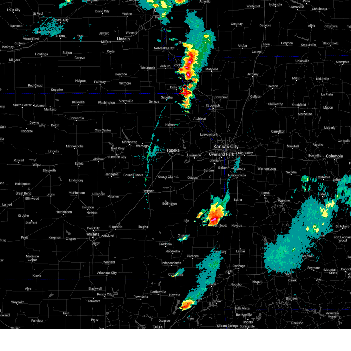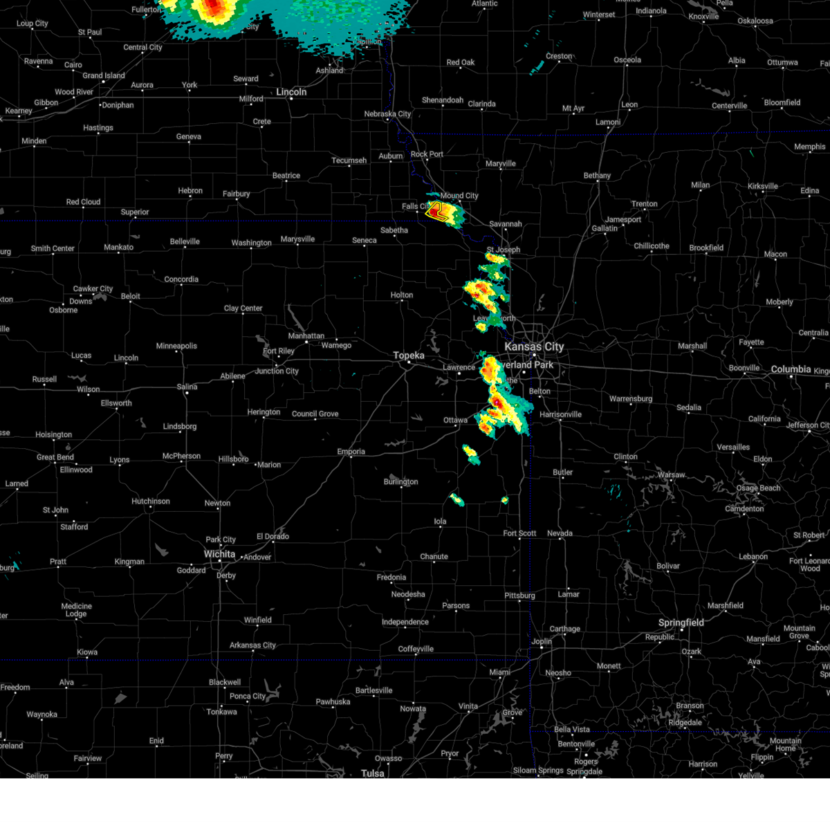 At 920 am cdt, a severe thunderstorm was located over rulo, or 8 miles east of falls city, moving northeast at 25 mph (radar indicated). Hazards include 60 mph wind gusts and quarter size hail. Hail damage to vehicles is expected. expect wind damage to roofs, siding, and trees. locations impacted include, rulo, iowa reservation of kansas and nebraska, and sac and fox nation reservation. hail threat, radar indicated max hail size, 1. 00 in wind threat, radar indicated max wind gust, 60 mph.