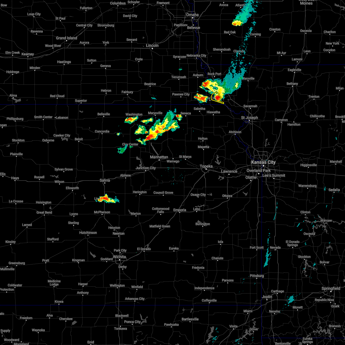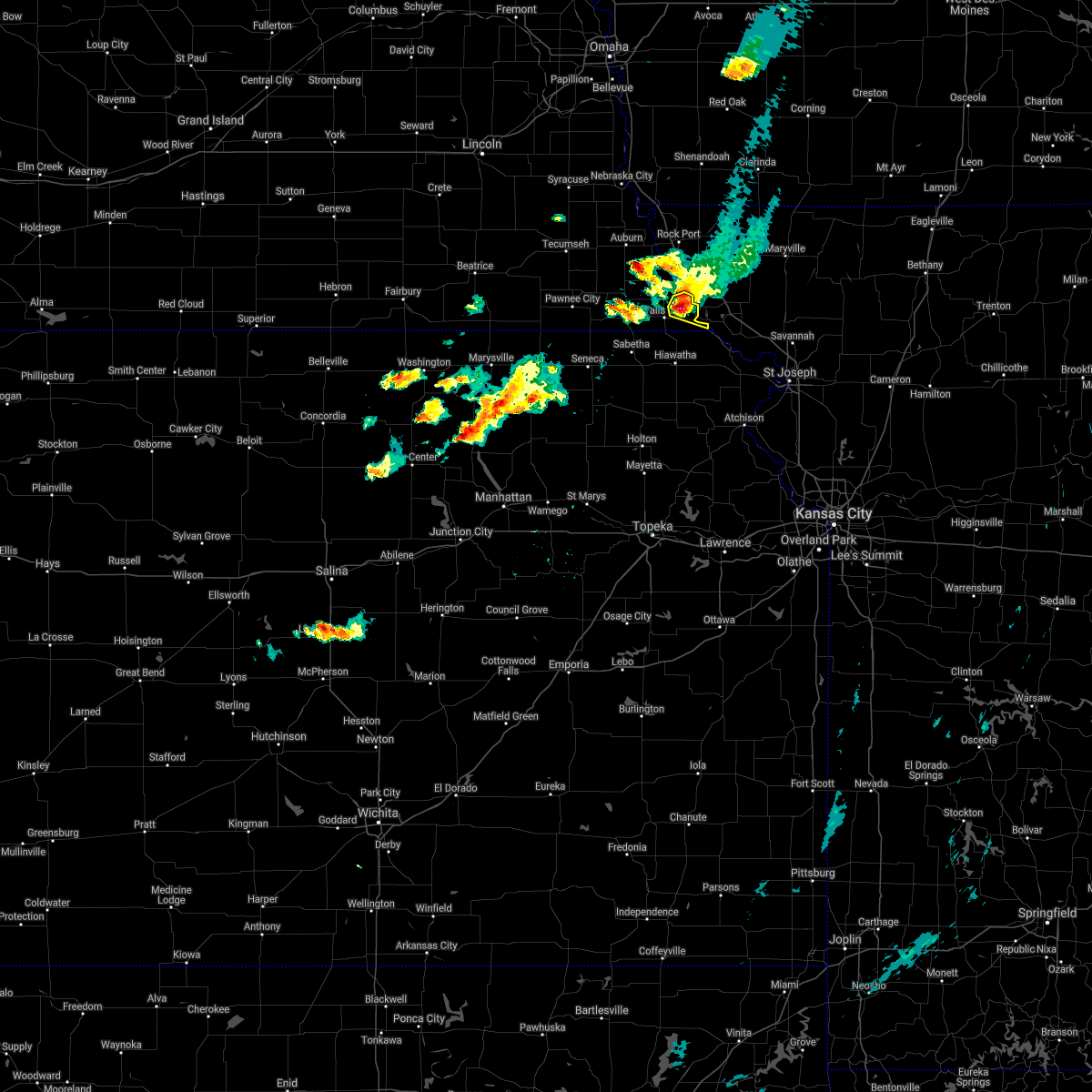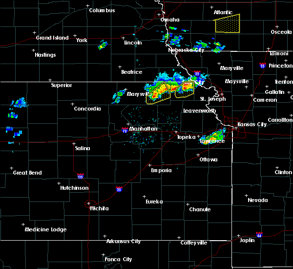 At 857 pm cdt, a severe thunderstorm was located 5 miles south of rulo, or 9 miles northeast of hiawatha, moving northeast at 40 mph (radar indicated). Hazards include 60 mph wind gusts and quarter size hail. Hail damage to vehicles is expected. expect wind damage to roofs, siding, and trees. this severe thunderstorm will remain over mainly rural areas of southeastern richardson county, including the following locations, preston, sac and fox nation reservation and iowa reservation of kansas and nebraska. hail threat, radar indicated max hail size, 1. 00 in wind threat, radar indicated max wind gust, 60 mph.
