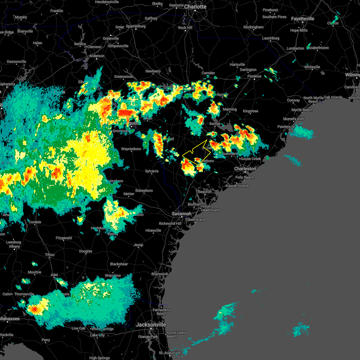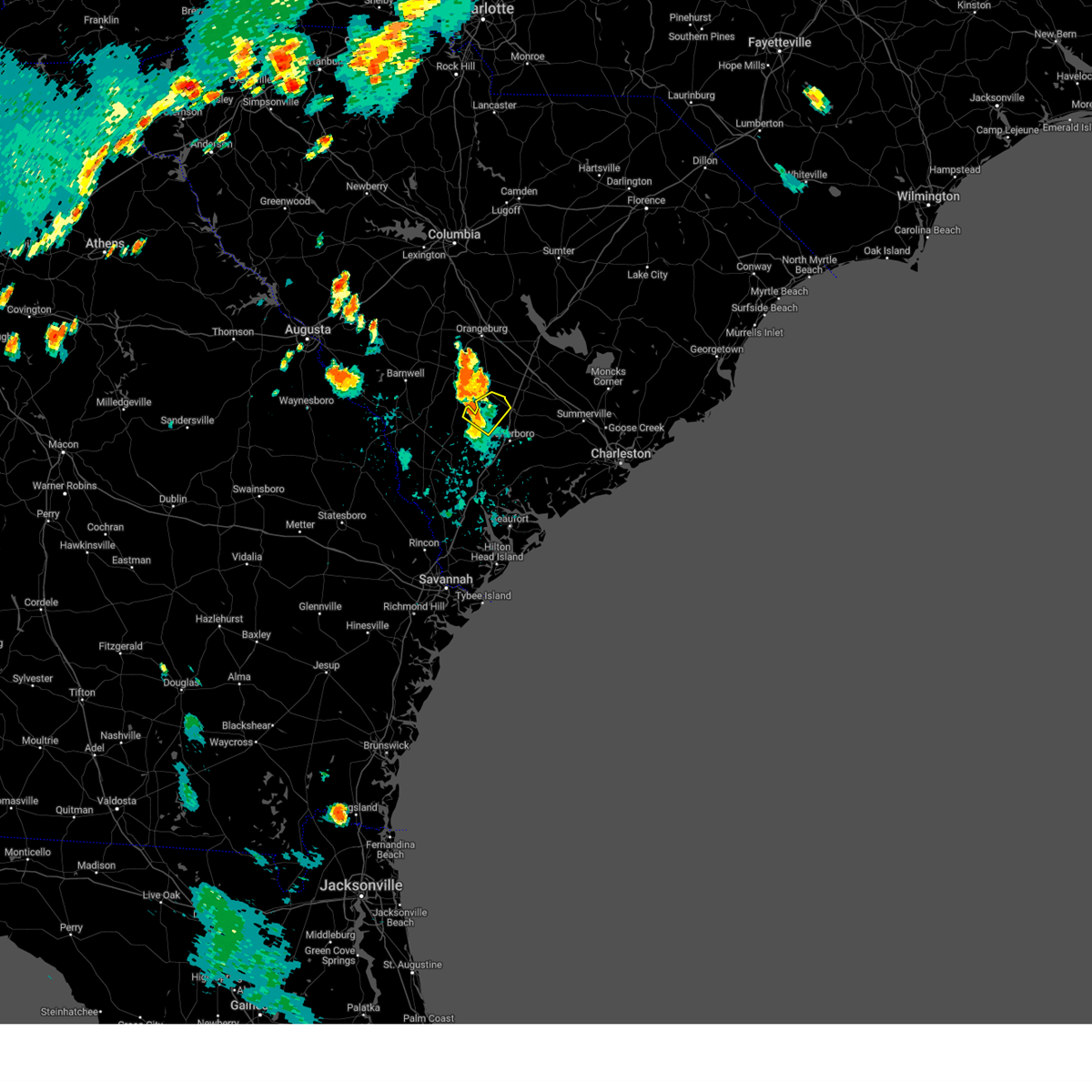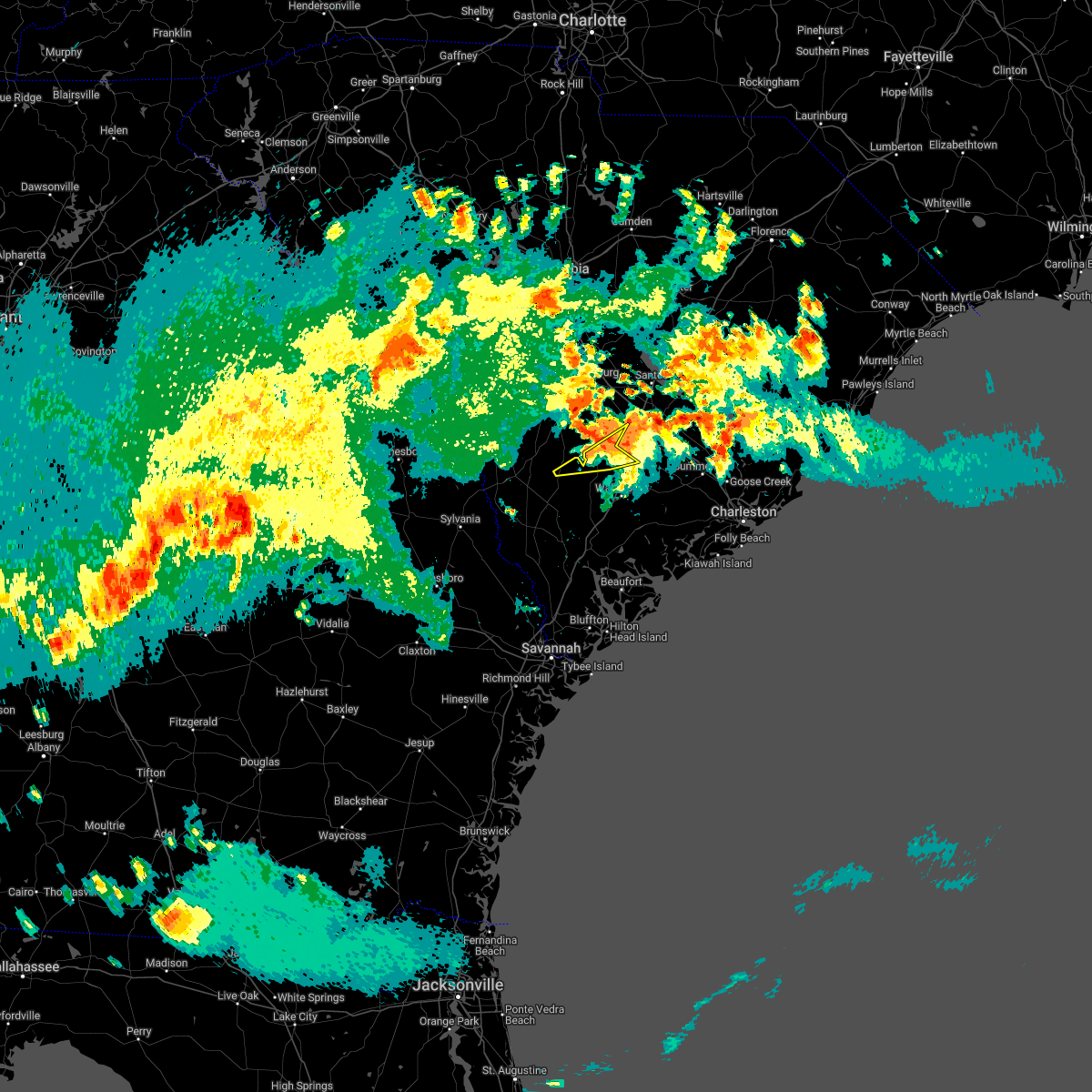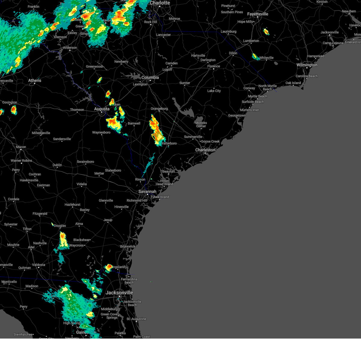 At 325 pm est, severe thunderstorms were located along a line extending from near smoaks to near tarboro, moving northeast at 55 mph (radar indicated). Hazards include 60 mph wind gusts and quarter size hail. Minor hail damage to vehicles is possible. expect wind damage to trees and powerlines. locations impacted include: beaufort, walterboro, ridgeland, saint george, yemassee, givhans ferry state park, dorchester, cottageville, harleyville, reevesville, smoaks, williams, coosawhatchie, ruffin, and gardens corner. this warning includes the following interstates: i-26 between mile markers 171 and 186. i-95 in south carolina between mile markers 23 and 85. hail threat, radar indicated max hail size, 1. 00 in wind threat, radar indicated max wind gust, 60 mph.