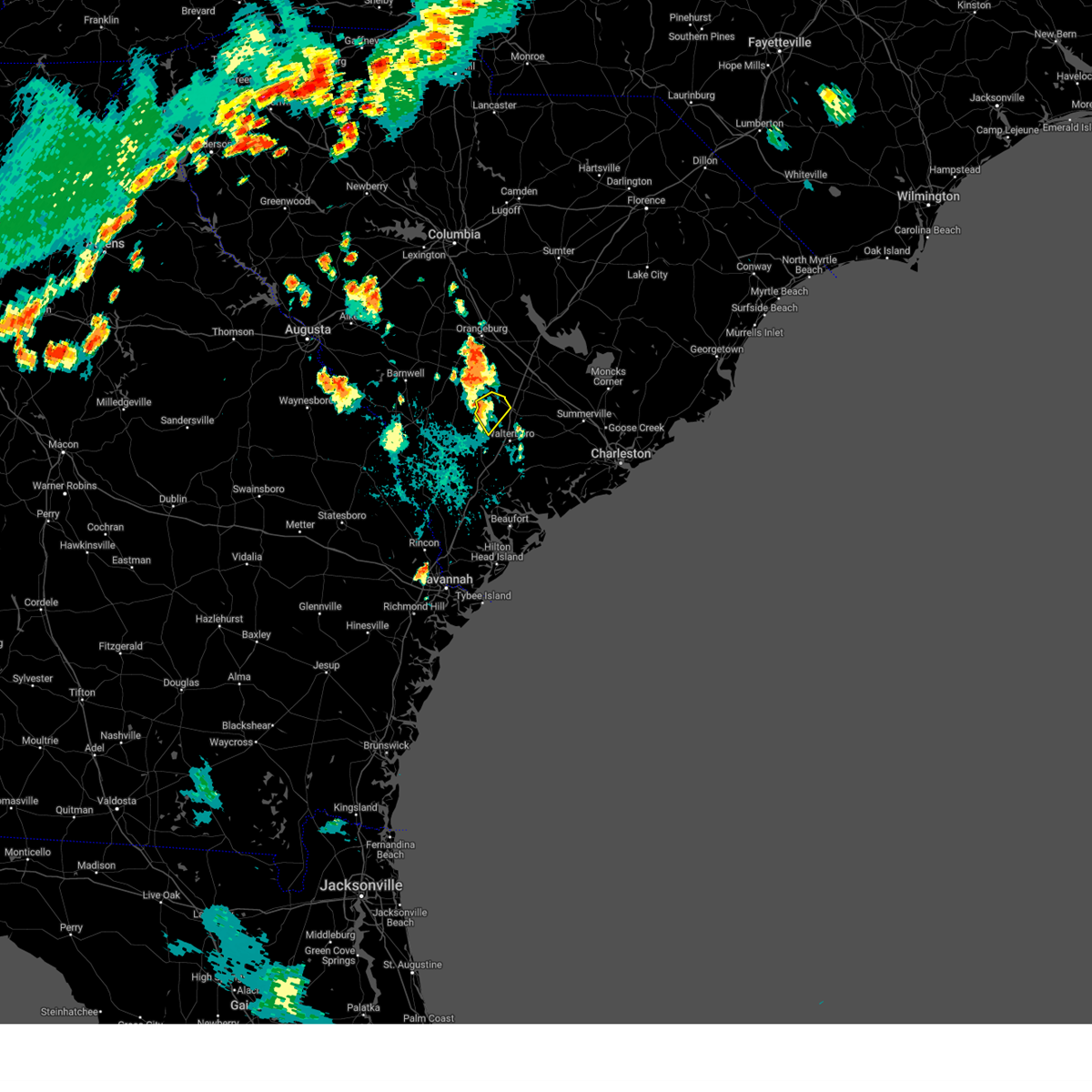 At 339 pm edt, a severe thunderstorm was located near allendale, moving southeast at 25 mph (radar indicated). Hazards include 60 mph wind gusts and quarter size hail. Hail damage to vehicles is expected. expect wind damage to roofs, siding, and trees. Locations impacted include, allendale, hampton, lake warren state park, colleton, varnville, estill, fairfax and brunson.