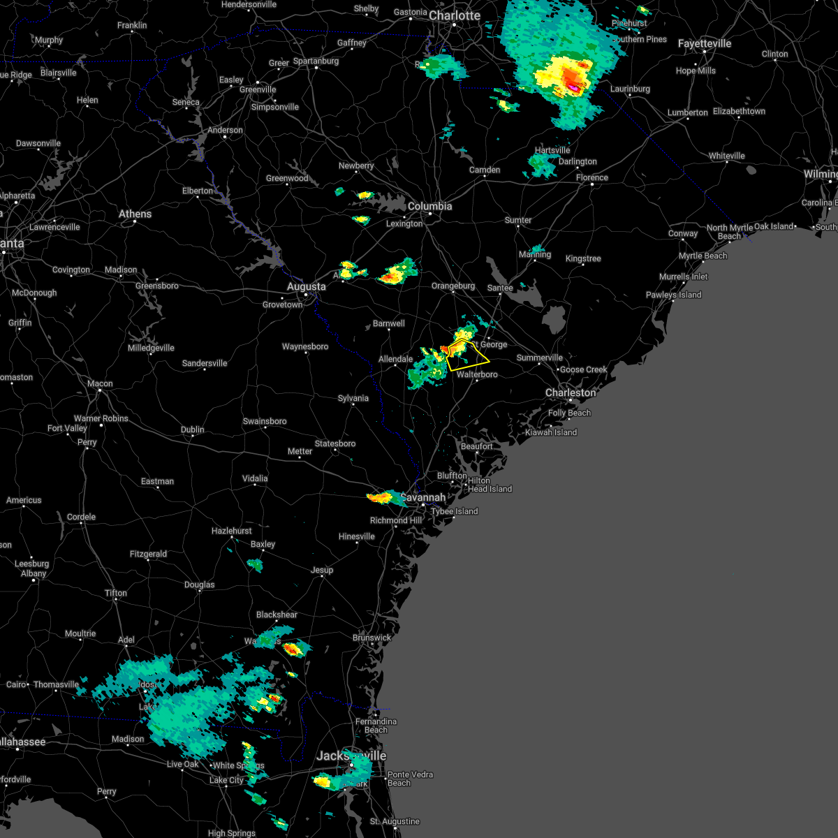 At 749 pm edt, severe thunderstorms were located along a line extending from near reevesville to near smoaks to almeda intersection, moving east at 35 mph (radar indicated). Hazards include 60 mph wind gusts. Expect damage to trees and powerlines. locations impacted include: walterboro, hampton, saint george, givhans ferry state park, dorchester, colleton, varnville, cottageville, harleyville, reevesville, smoaks, williams, ruffin, hendersonville, and round o. this warning includes the following interstates: i-26 between mile markers 171 and 187. i-95 in south carolina between mile markers 41 and 85. hail threat, radar indicated max hail size, <. 75 in wind threat, radar indicated max wind gust, 60 mph.
