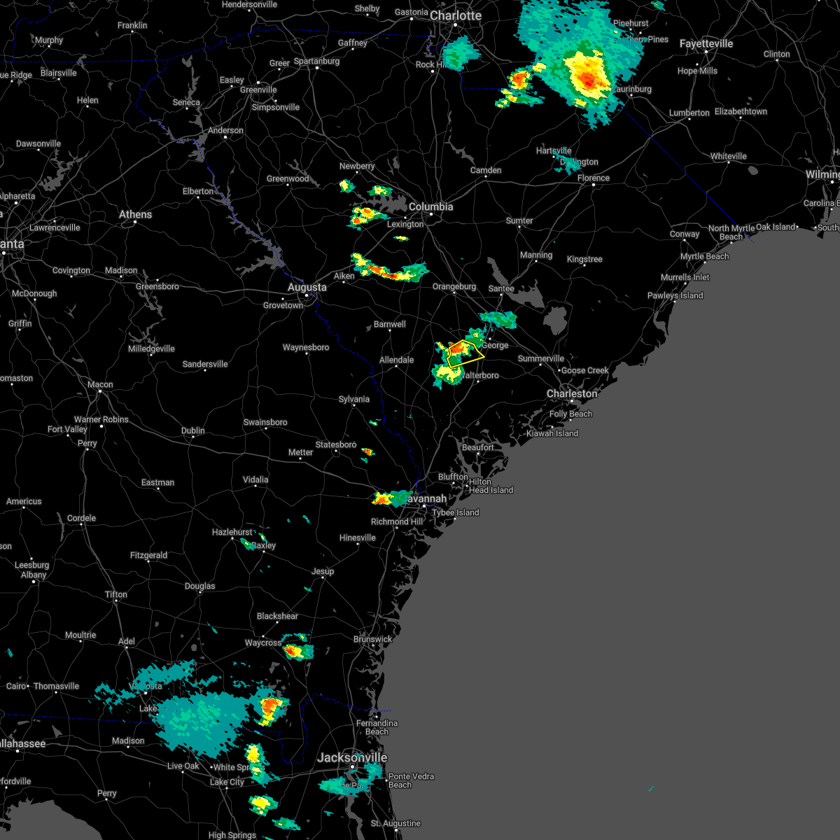At 328 pm est, severe thunderstorms were located along a line extending from near smoaks to near tarboro, moving northeast at 55 mph (radar indicated). Hazards include 60 mph wind gusts. Expect damage to trees and powerlines. locations impacted include: beaufort, walterboro, ridgeland, saint george, yemassee, givhans ferry state park, dorchester, cottageville, harleyville, reevesville, smoaks, williams, coosawhatchie, ruffin, and gardens corner. this warning includes the following interstates: i-26 between mile markers 171 and 186. i-95 in south carolina between mile markers 23 and 85. hail threat, radar indicated max hail size, <. 75 in wind threat, radar indicated max wind gust, 60 mph.